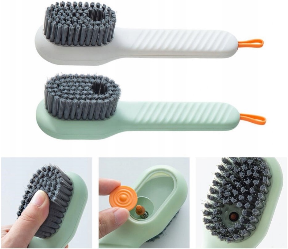 ✅ Щетка с дозатором жидкости подходит для чистки различных типов поверхностей – как кожаных, так и тканевых.