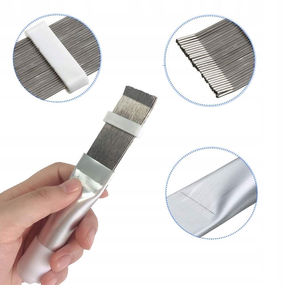 【Набор для чистки】 В комплект поставки входит 1 средство для чистки ребер холодильника из нержавеющей стали, 1 щетка для чистки ребер конденсатора кондиционера и 1 многофункциональная пластиковая чистящая щетка. Их объединение обеспечивает более эффективную очистку.