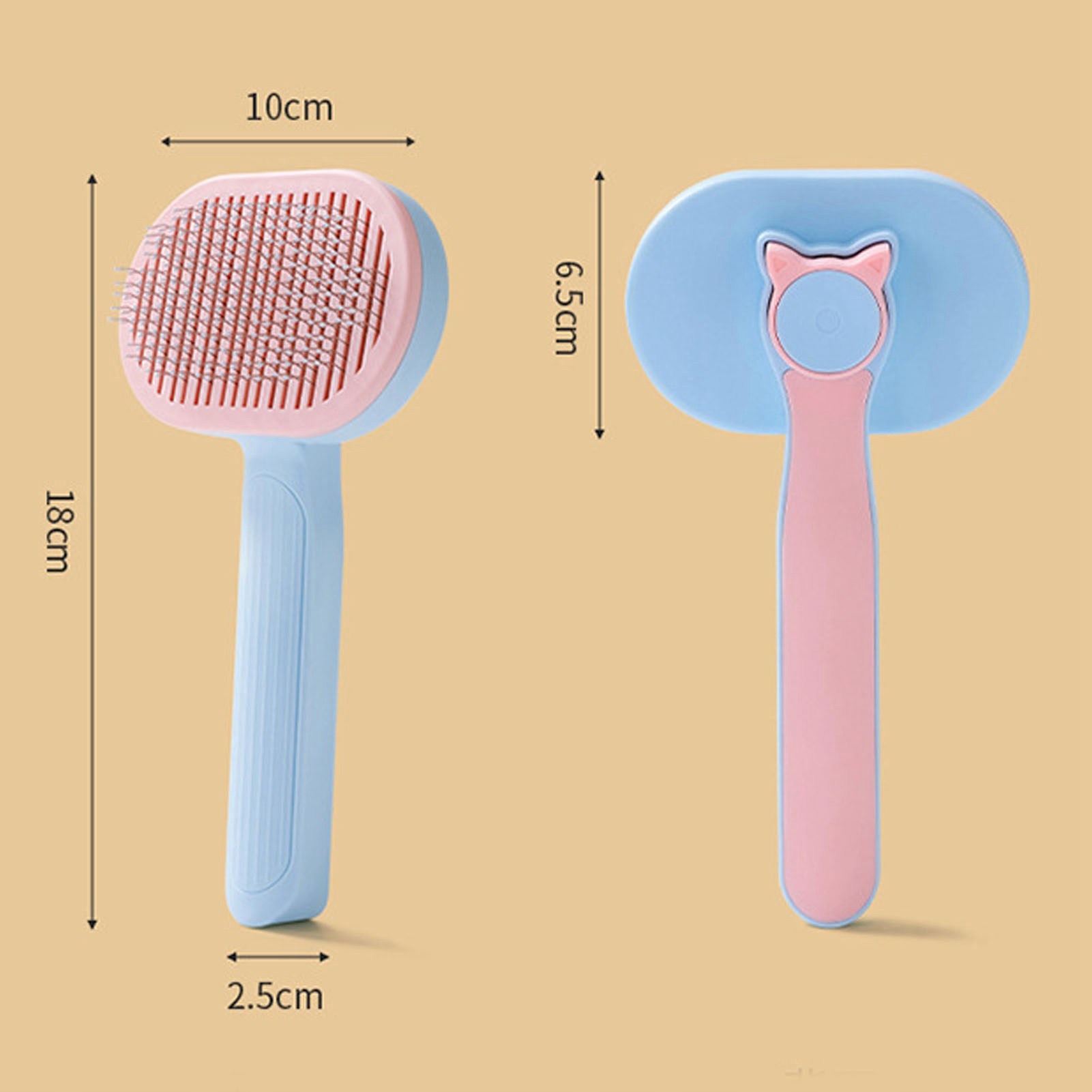 Щетка для ухода за кошками с мягкими зубцами, эргономичный дизайн, щетка для кошачьей шерсти с кнопкой отпускания, для длинной шерсти, для собак, массаж домашних животных, синий, розовый