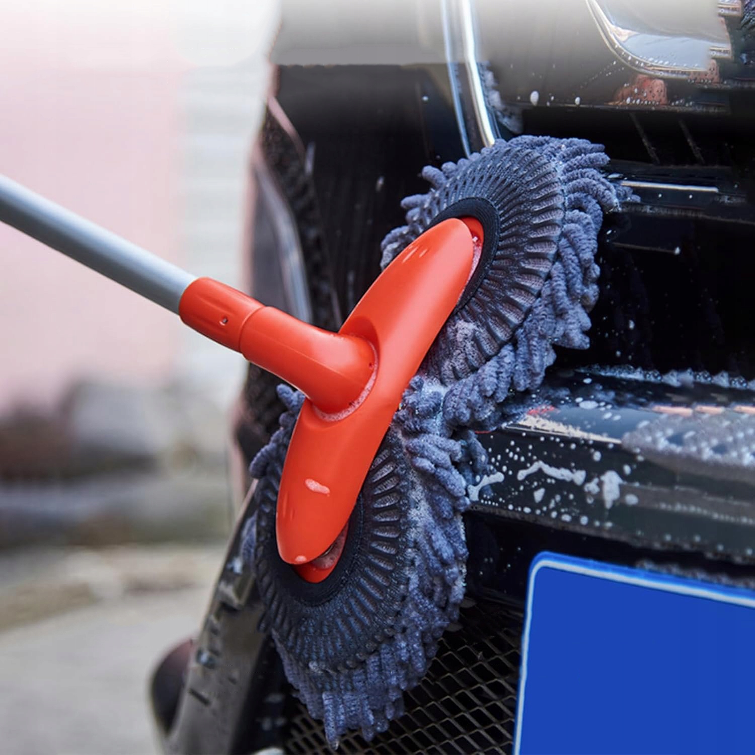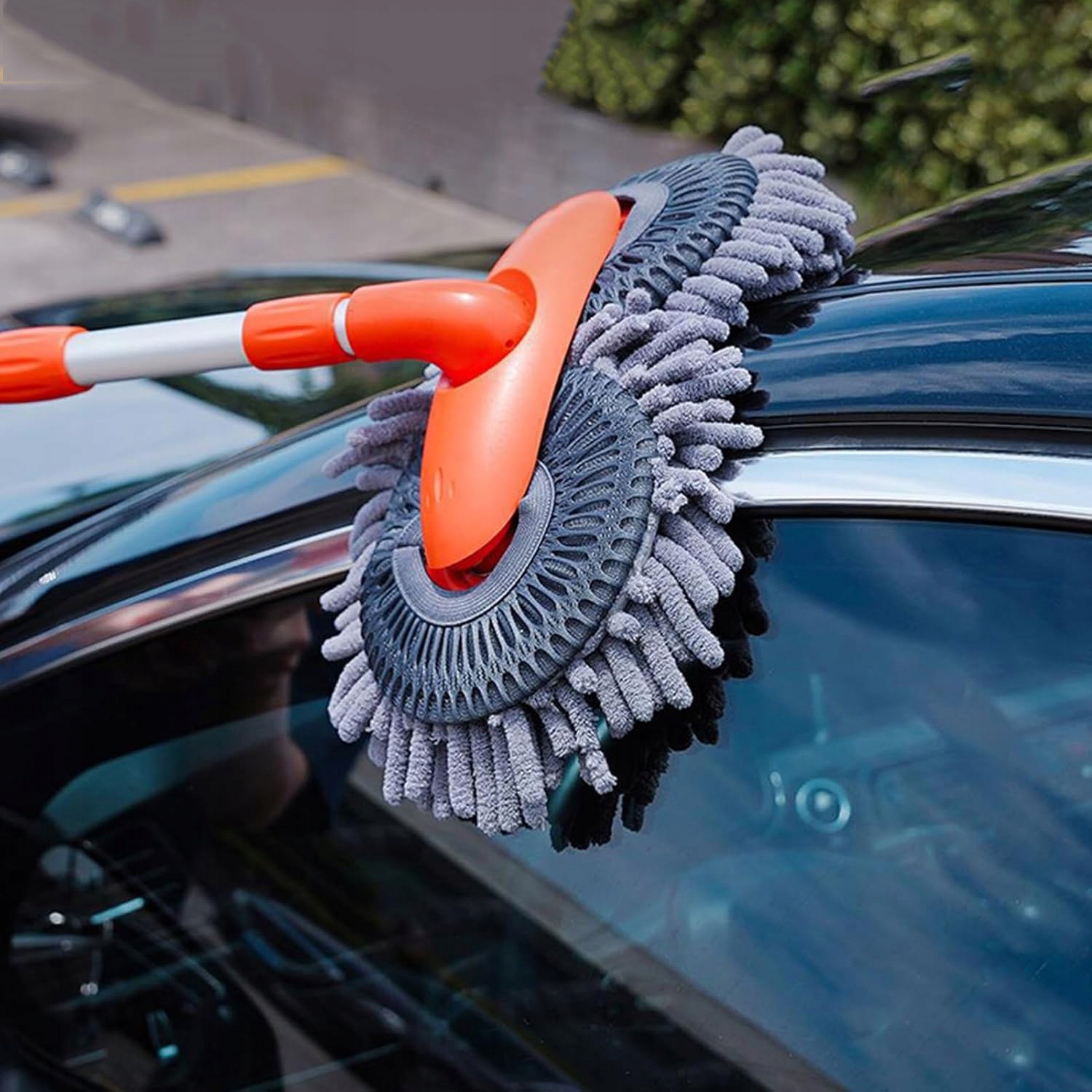 🚓🚓Двойная насадка из мягкой микрофибры: Эта щетка для швабры для автомойки оснащена двойной насадкой из синельного микроволокна размером 30x16 см. Достаточно широкий для большего диапазона очистки. Щетка для швабры для мойки автомобиля мягкая и впитывающая, легко пенится и не царапается, вам не нужно беспокоиться о повреждении лакокрасочного покрытия автомобиля.