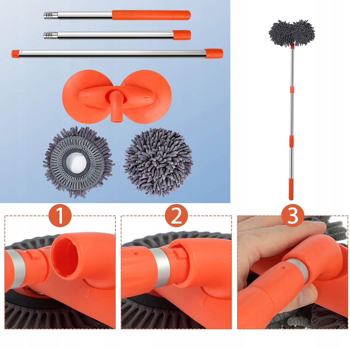 🚓🚓 Простота в использовании: Эту щетку для швабры для автомойки легко собрать. Благодаря фиксирующей пряжке удлинитель легко вставляется в разъем насадки швабры. Поверните его, чтобы зафиксировать, чтобы он не упал при интенсивном использовании. Очень прочный и долговечный