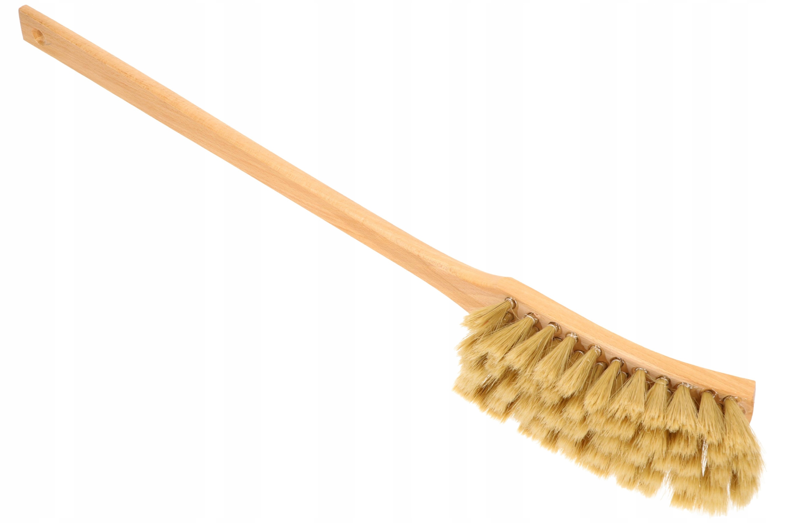 - Щётка для чистки имеет деревянную ручку с отверстием для подвешивания.