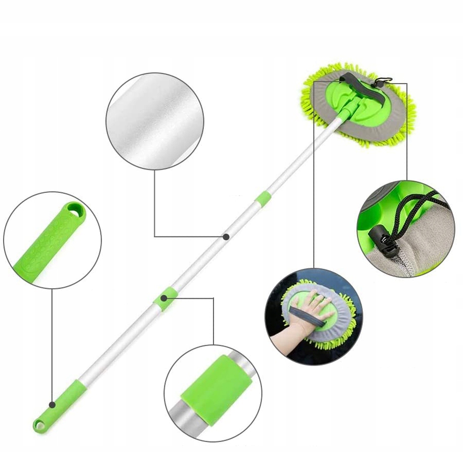 【Комплексная уборка】 - Регулируемая на 180 градусов телескопическая моющая швабра, длина составляет 54-113 см/21-44, что позволяет легко и тщательно очистить автомобиль, включая крышу, капот и переднее стекло.