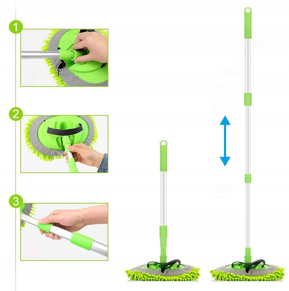 【Перчатка для швабры 2 в 1】 — На насадке для чистки швабры есть ремешок, вы можете легко отсоединить ручку и использовать насадку в качестве чистящей перчатки для чистки салона автомобиля.< /п>