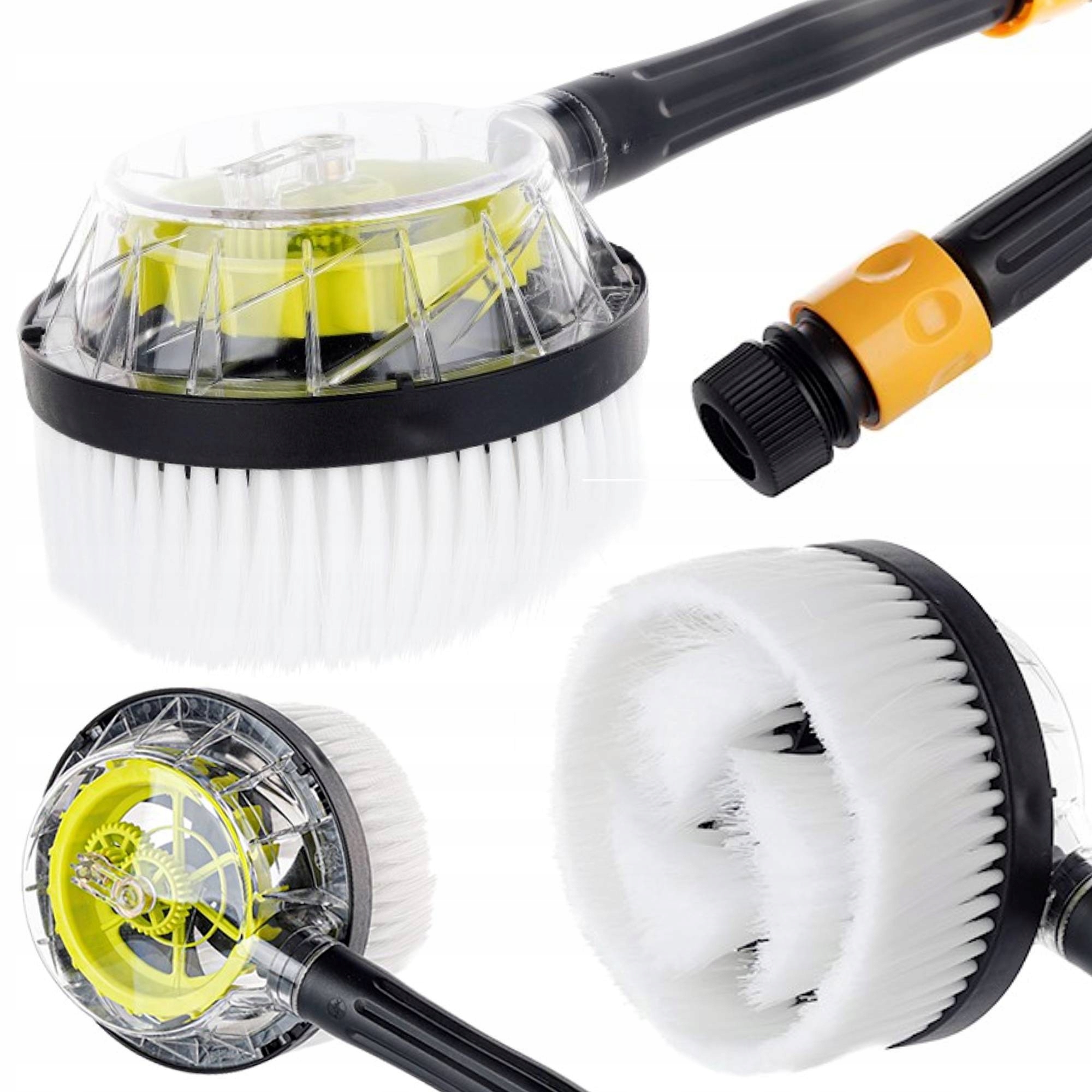 Щётка, работающая от напора струи воды из подсоединённого шланга. Идеально подходит для мытья автомобилей, дисков, квадроциклов, велосипедов, инструментов и садовой мебели. Щетинки чистящей насадки имеют различную жесткость и гибкость, что обеспечивает эффективную очистку. Подходит для разъема садового шланга диаметром 1/2 дюйма.