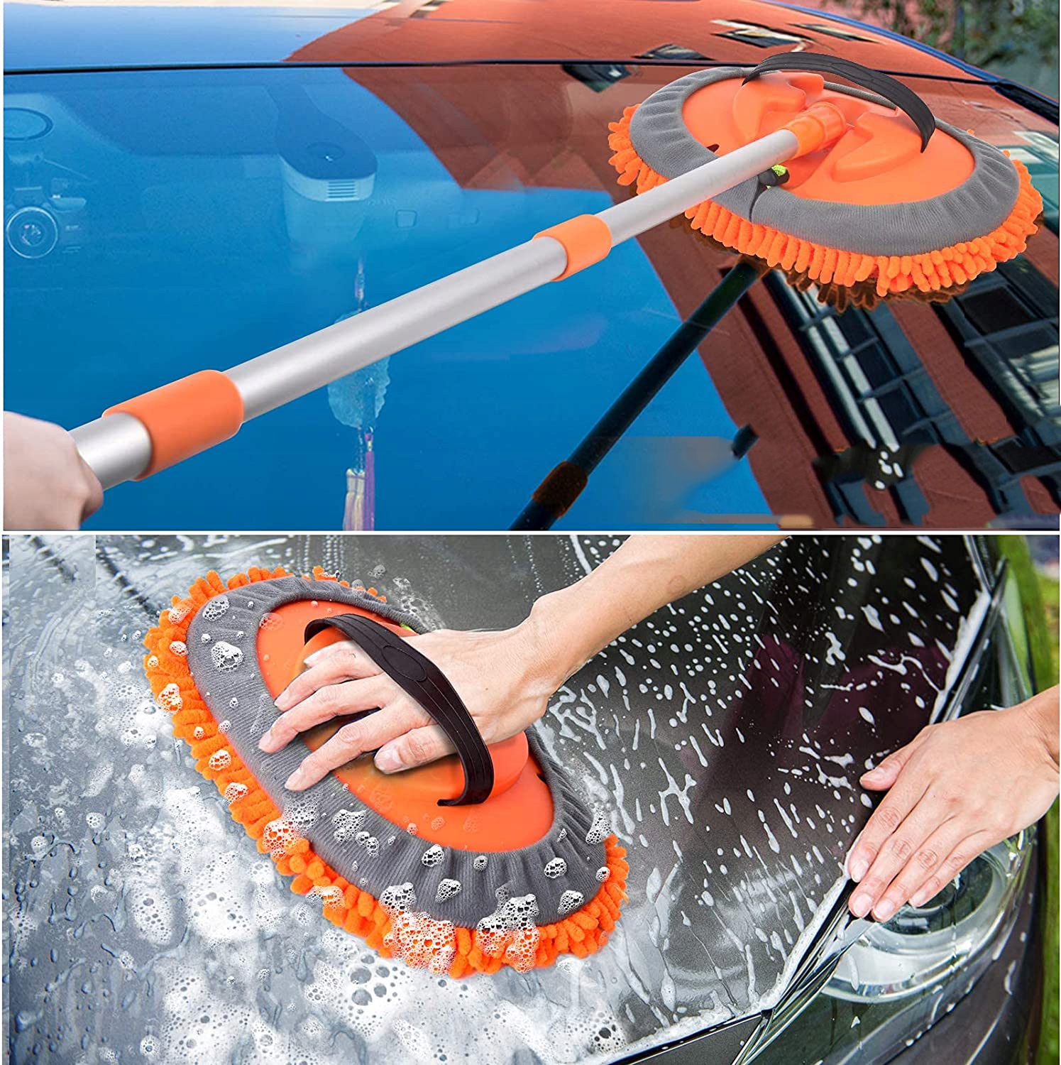 в 2 раза высокая качественная кисть для промывки автомобиля из микрофибля обладает сильным водопоглощенным и дезинфекрующим свойствами, удаляет пыль и грязь только с несколькими движениями. А голова чистящей кисти автомобиля очень мягкая, не будет царапать автомобиль и не повредить лак. Нет царапин, без крыш.