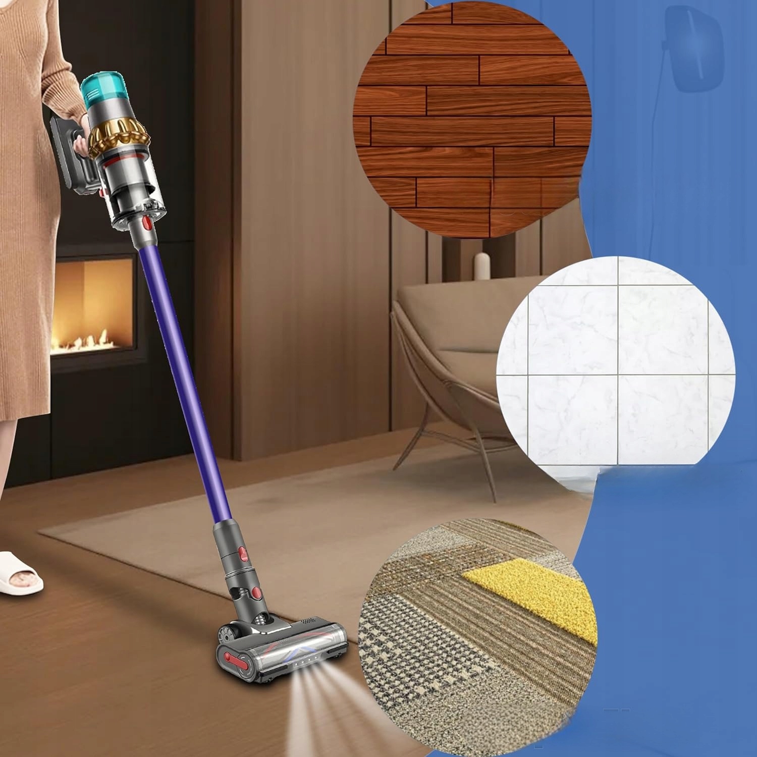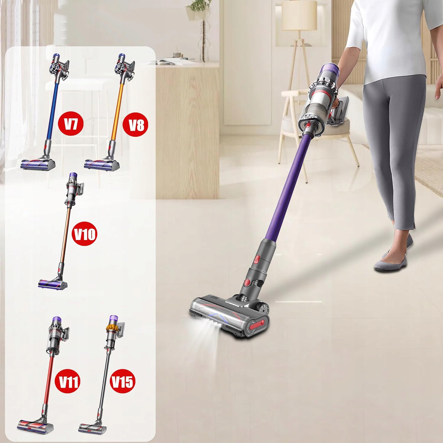 🏠️Электрический валик-щетка, совместимый с Dyson V7 V8 V10 V11 V15, со смешанной щетиной и светодиодной подсветкой, подходит для всех полов🏠️