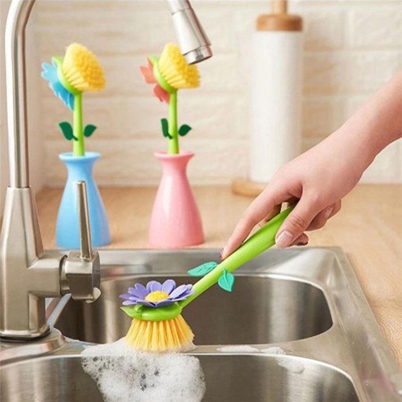 Щітка для миття посуду, мочалка для миття тарілок, квітка у вазі