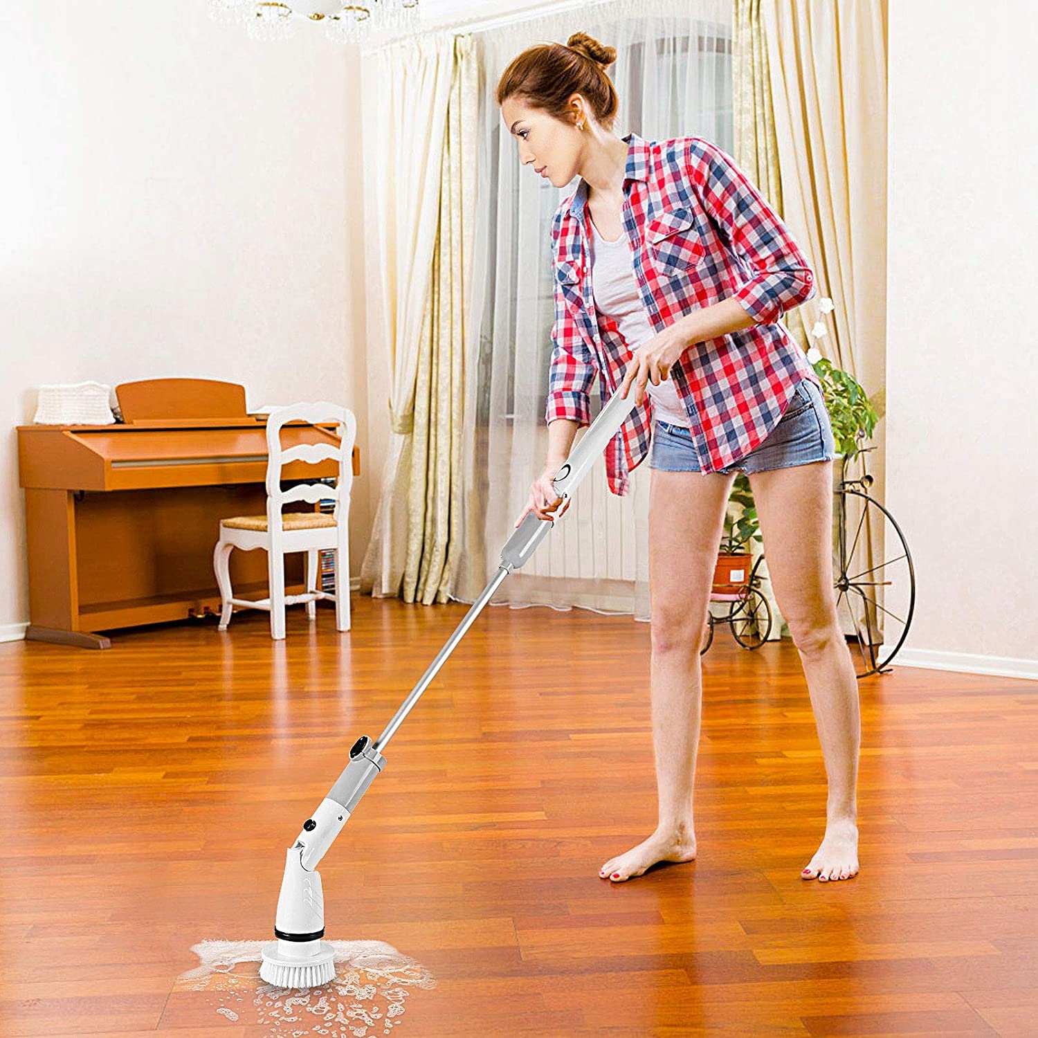 🔆 Насадку щетки-скруббера можно наклонять или регулировать различными способами, нажав кнопку на головке.