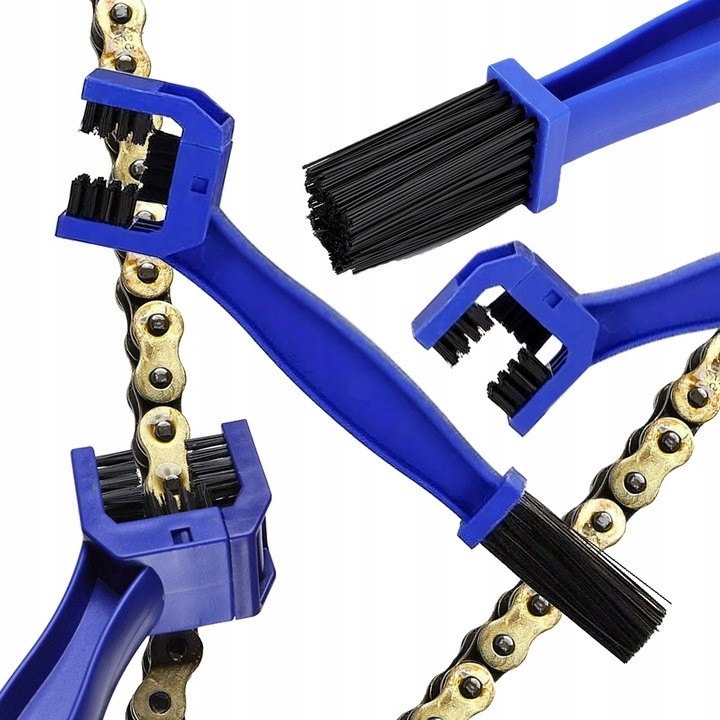 Щётка для чистки цепей, например мотоциклетных или велосипедных. Позволяет чистить, не расстегивая цепь. Также щеткой можно очистить и другие металлические элементы (шестеренки, винты и т. д.). Удлиненная основная часть щетки обеспечивает быструю и тщательную очистку. Длинная щетина идеально подходит для сильно загрязненных цепей. Подходит для цепей большинства размеров.