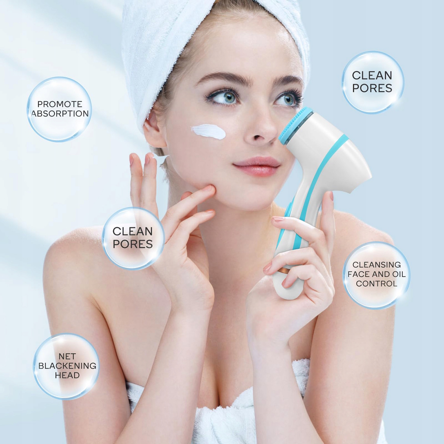 Сначала нанесите компресс на лицо, затем, когда поры откроются, нанесите очищающий гель или пенку. Чтобы активировать кисть, нажмите и удерживайте кнопку.