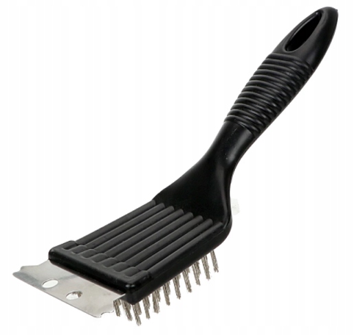 Щетка с металлическим скребком сохранит решетку в безупречной чистоте, а жесткая металлическая щетина легко удалит остатки пригоревшей пищи.
