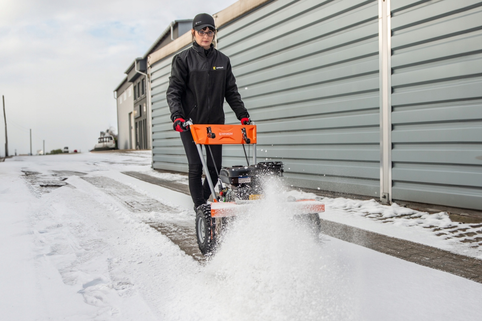 Подметальная машина Handy WZ60BS отлично справляется с тонким слоем снега, быстро его убирая. Если снега больше, мы можем использовать дополнительный снегоочиститель. Подметальная машина очень полезна осенью и зимой, а значит, ее можно использовать круглый год.