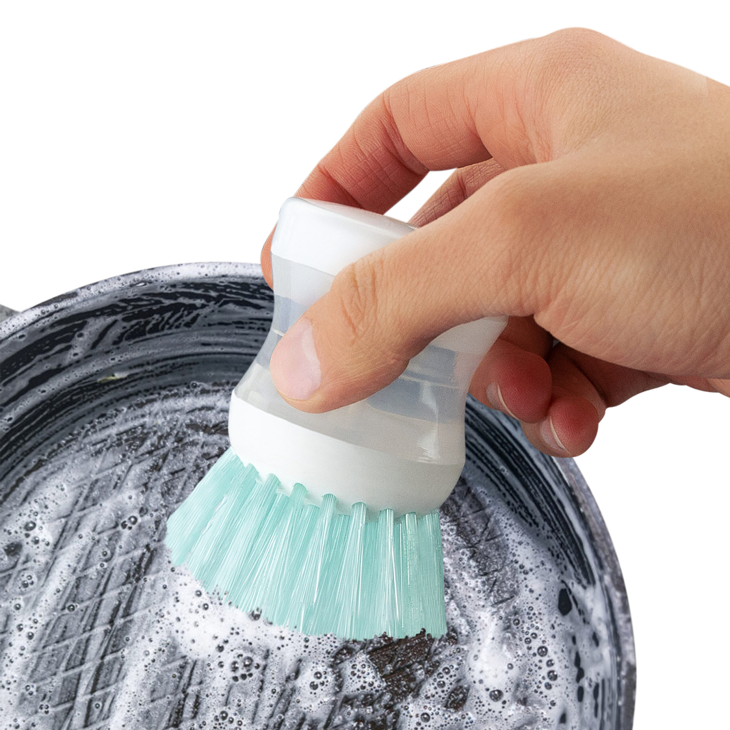 ✔️Щётка для посуды с дозатором — очень функциональный кухонный инструмент. Удобная ручка обеспечивает удобство использования. Имеет съемный контейнер для слива жидкости и специальную кнопку для ее дозирования.