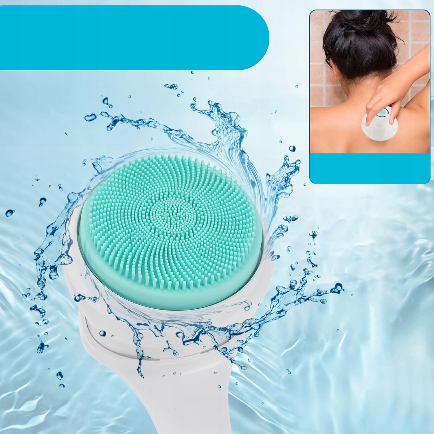 🛁【Водонепроницаемый дизайн IPX7】 Электрическая задняя щетка изготовлена из прорезиненного силикона, который является водонепроницаемым и позволяет безопасно использовать ее в душе. Щетка для душа с длинной ручкой и эргономичным дизайном, удобна в использовании.