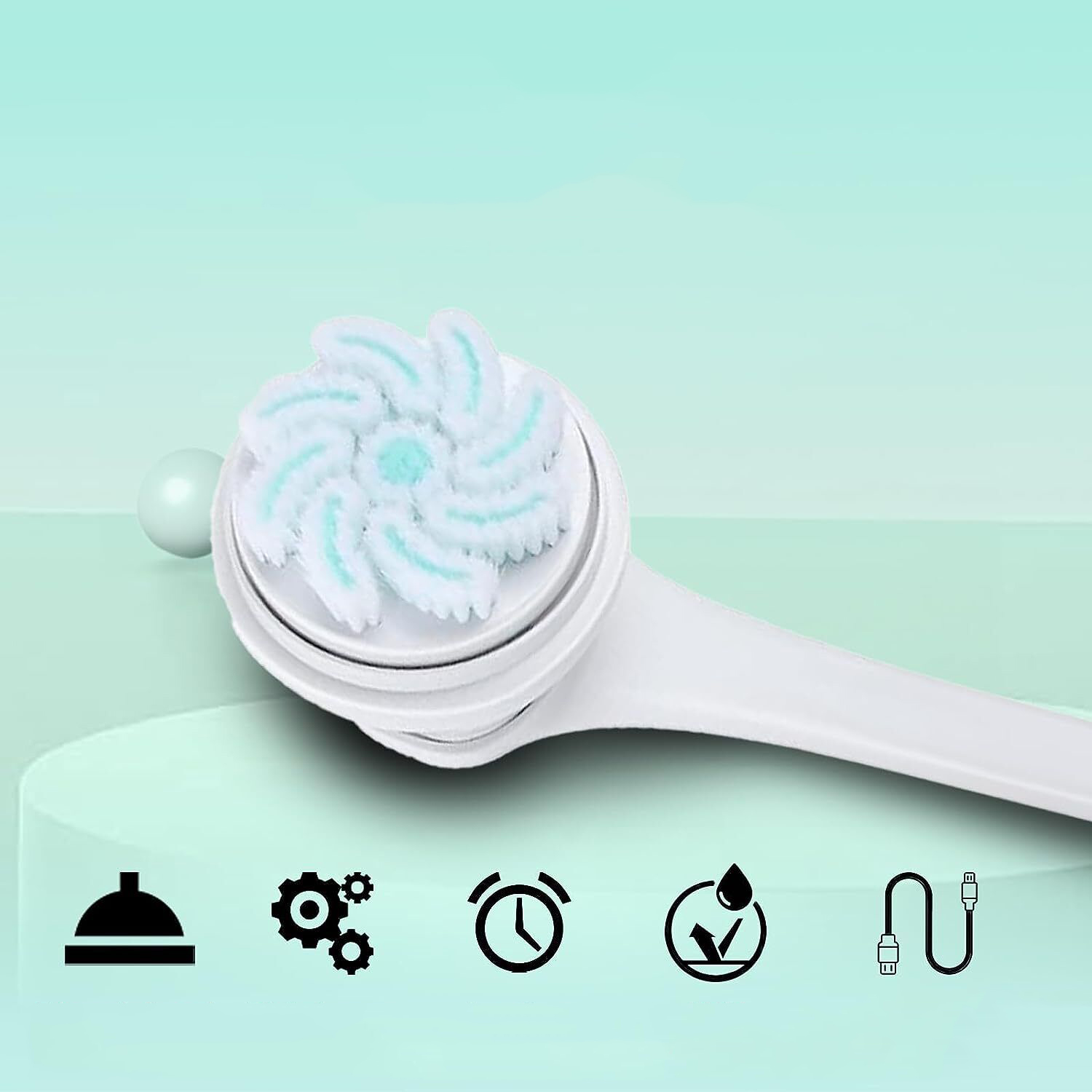 🛀🏻【Очищение с вращением на 360°】 Электрическая щетка для спины с мощной и быстро вращающейся головкой эффективно отшелушивает. все тело и удаляет масло и грязь. Щетка для тела подходит для всех типов кожи, способствует глубокому очищению и питанию пор кожи. Сохраняет вашу кожу свежей в течение всего дня!