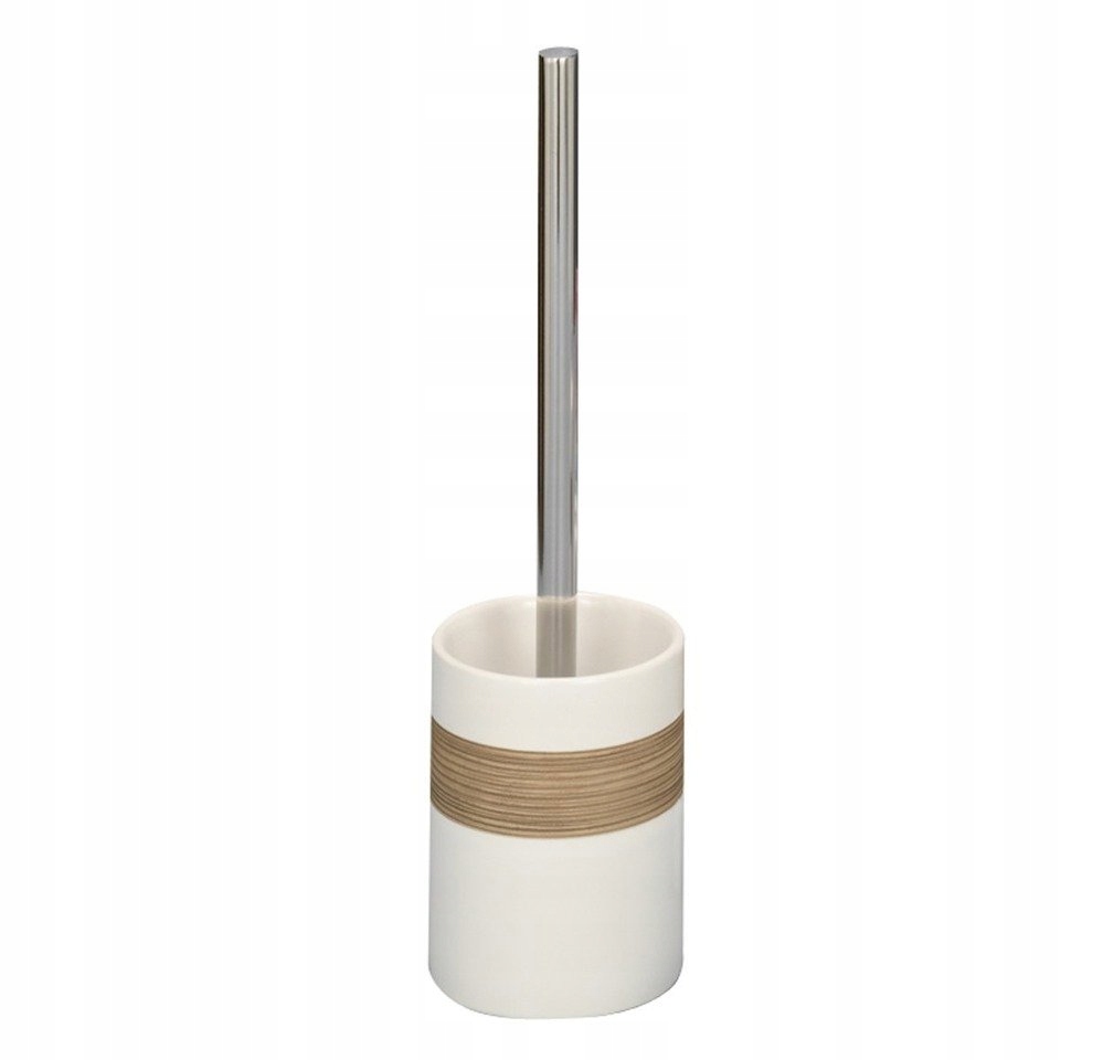 Элегантный набор для ванной комнаты Открыть контейнер + туалетная щетка из серии Beige Accessories с высококачественной керамикой. привлекательный дизайн идеально подходит для ванных комнат классического стиля и многое другое. Бежевый с декоративным коричневым ремешком. Щетка с заменяемой рутиной и ручкой из нержавеющей стали.