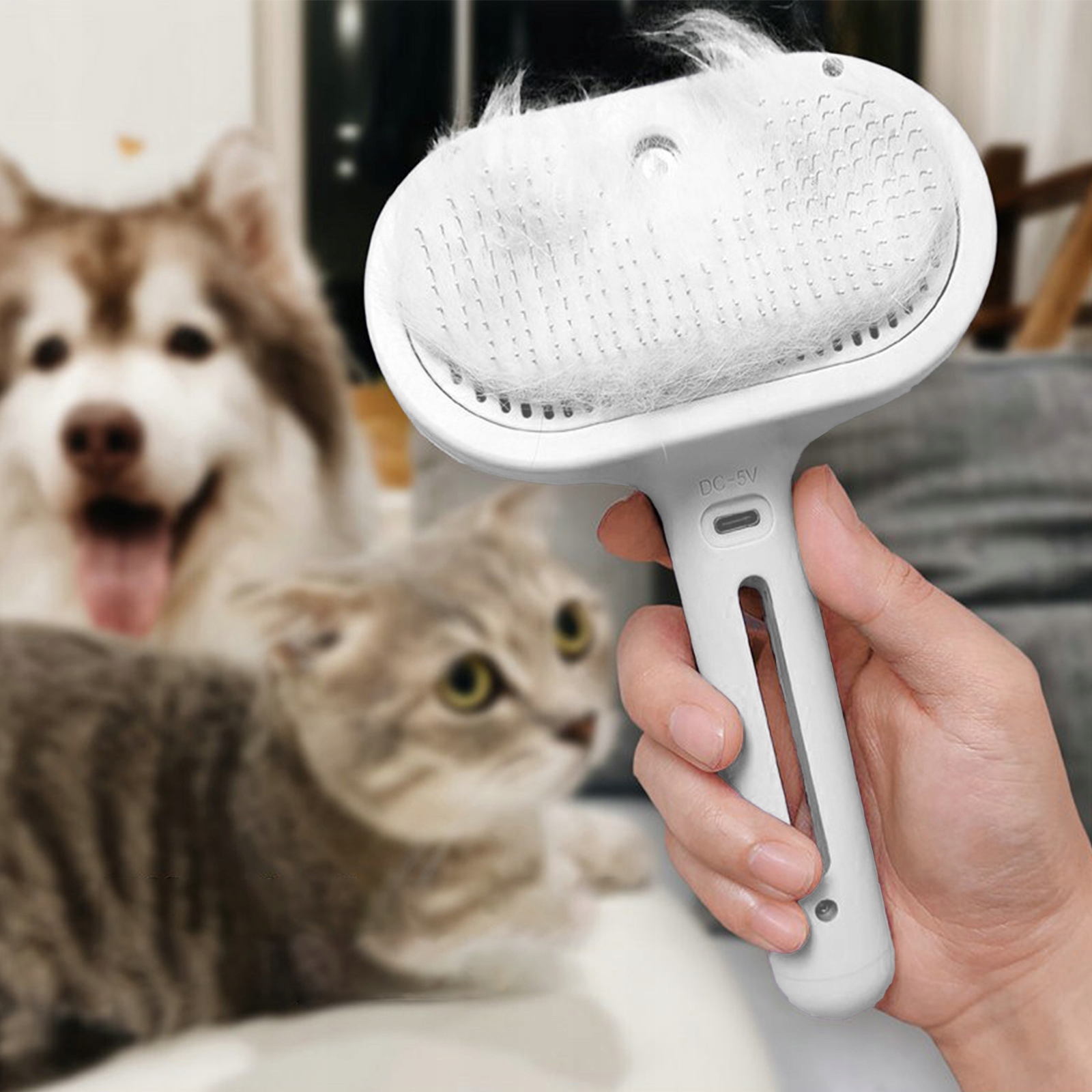ЭЛЕКТРИЧЕСКАЯ ПАРОВАЯ ЩЕТКА ДЛЯ КОШЕК И СОБАК 3В1 ТИП-C БЕЛАЯ