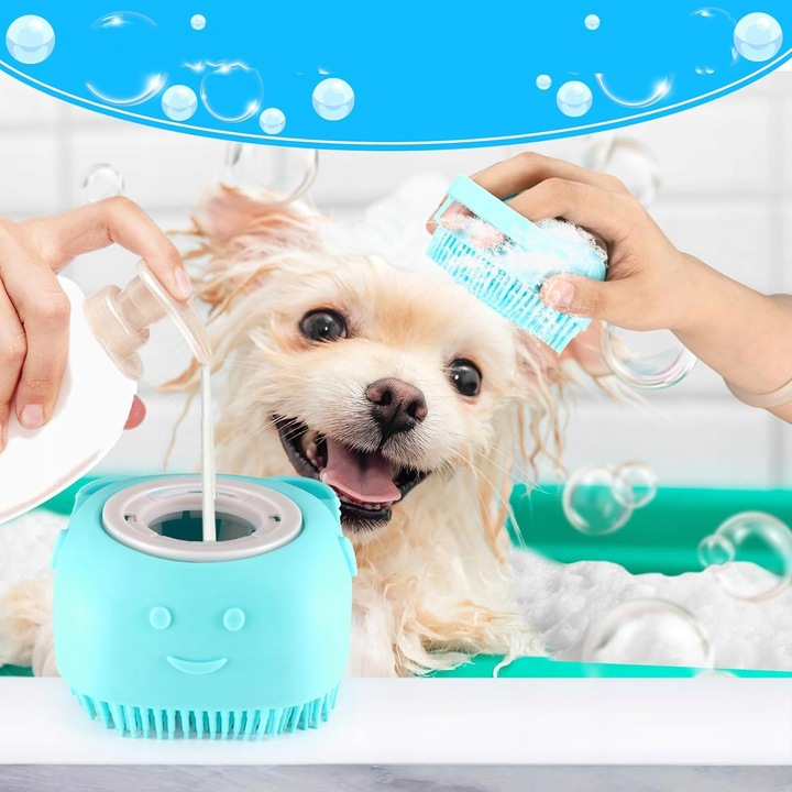 ЩЕТКА ДЛЯ МЫТЬЯ СОБАК И КОШКИ С ДОЗАТОРОМ ЖИДКОГО ШАМПУНЯ, СИЛИКОНОВАЯ