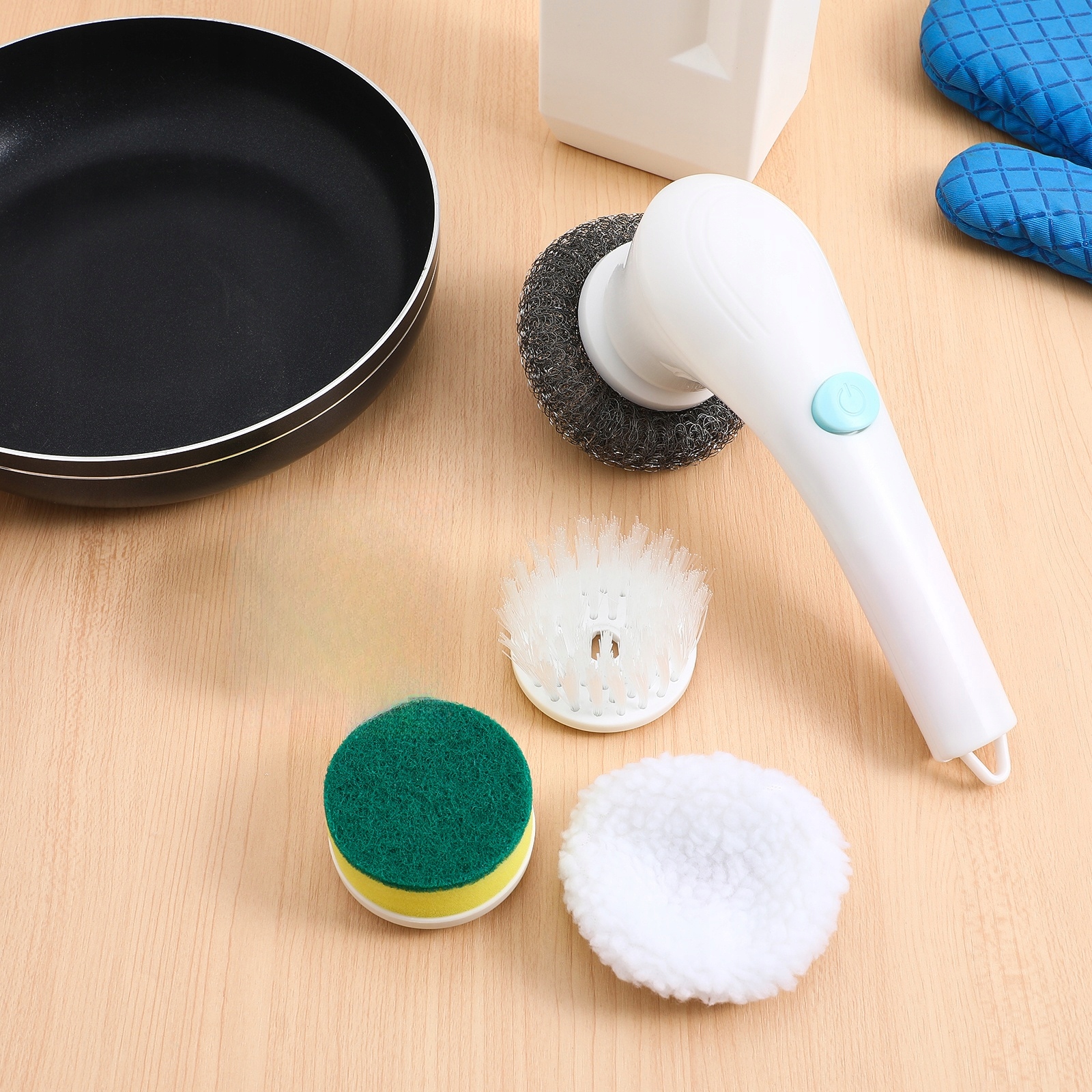 ✅Это электрический скруббер. Оснащен пятью различными насадками