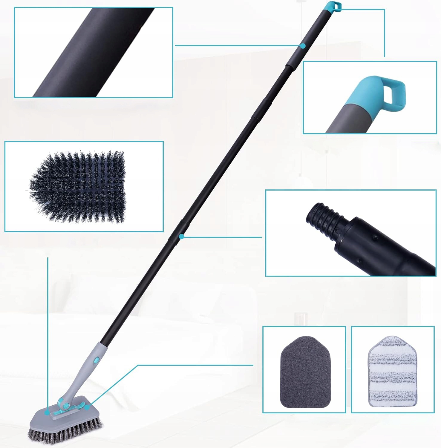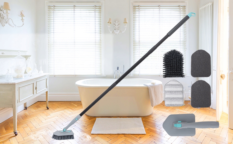 - ✔️Чистящая щетка 3-в-1 с длинной ручкой включает в себя три различные высококачественные чистящие насадки — щетку со щетиной, губку и подушечку из микрофибры.