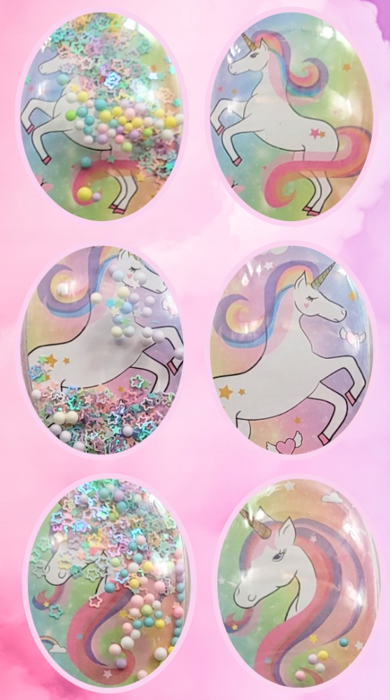 КРАСИВАЯ ЩЕТКА ДЛЯ ВОЛОС С ИЗОБРАЖЕНИЕМ ЕДИНОРОГА, КРАСИВЫМИ СИЯЮЩИМИ ЗВЕЗДАМИ И РАЗНОЦВЕТНЫМИ ШАРИКАМИ ПЕНЫ ВНУТРИ.