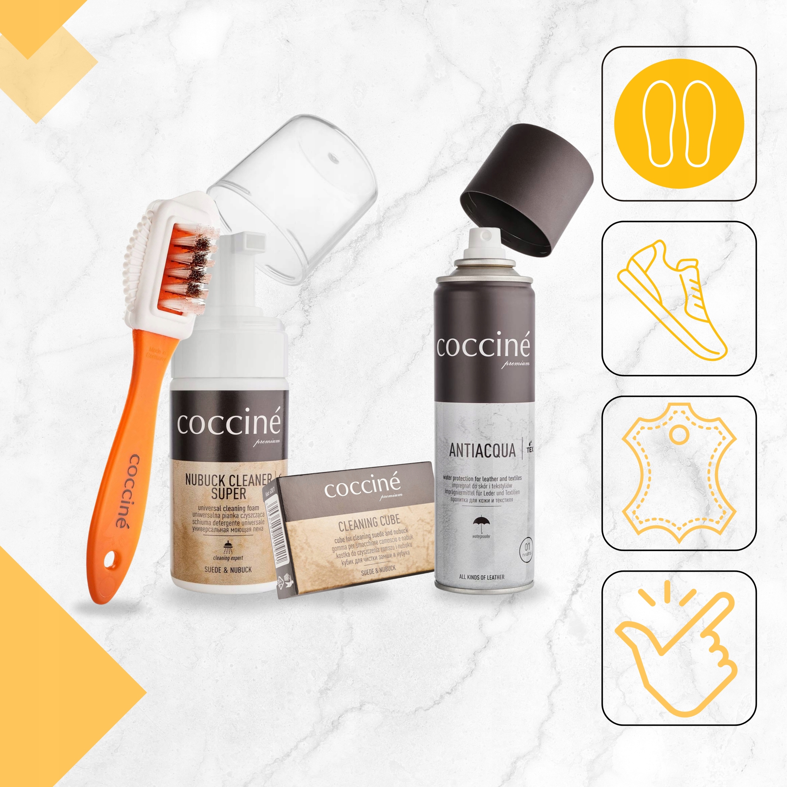 Набор щеток для замши с чистящим средством, ластиком и пропиткой Coccine 4 в 1