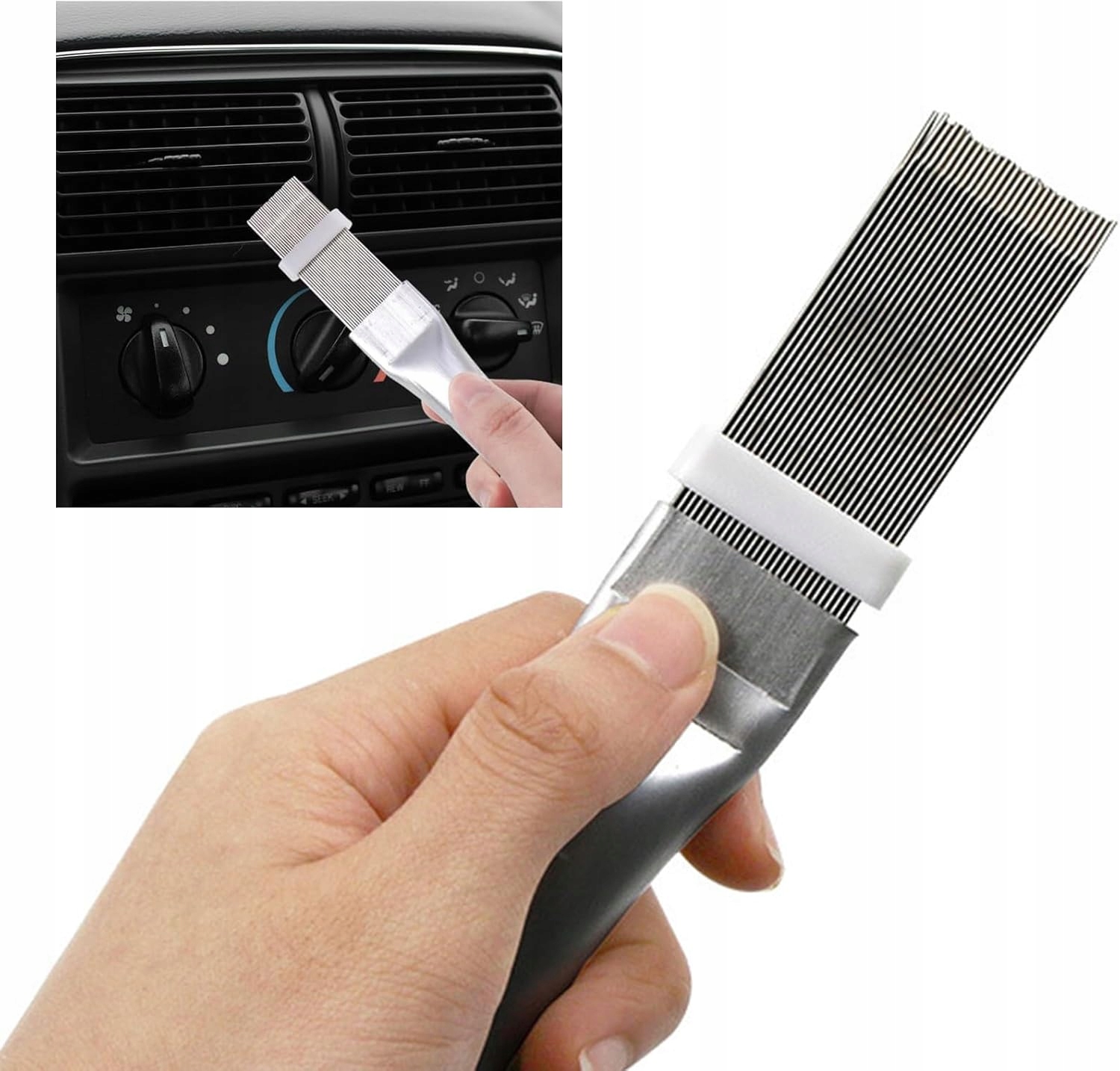 🛠️【Спиральная кисть】 Подходит для линейных конденсаторов; Белая подвижная пряжка позволяет регулировать кисть для использования, и чем ближе подвижная пряжка, тем плотнее и прочнее кисть. Его можно отрегулировать по мере необходимости, что облегчает очистку от грязи и предотвращает повреждение ребер. При использовании потяните кронштейн внутрь и вставьте колено щетки внутрь, чтобы удалить грязь или поддержать деформированный конденсатор. [Гребель для выпрямления ребер конденсатора] Инструмент для выпрямления ребер конденсатора имеет шестиугольную головку. Инструмент для выпрямления ребер может удалить пыль из конденсатора и помочь поддерживать циркуляцию воздуха, тем самым выпрямляя деформированный конденсатор и сохраняя двигатель холодным. Он идеально подходит для чистки и выпрямления конденсаторов, испарителей и многих других бытовых и автомобильных ребер.