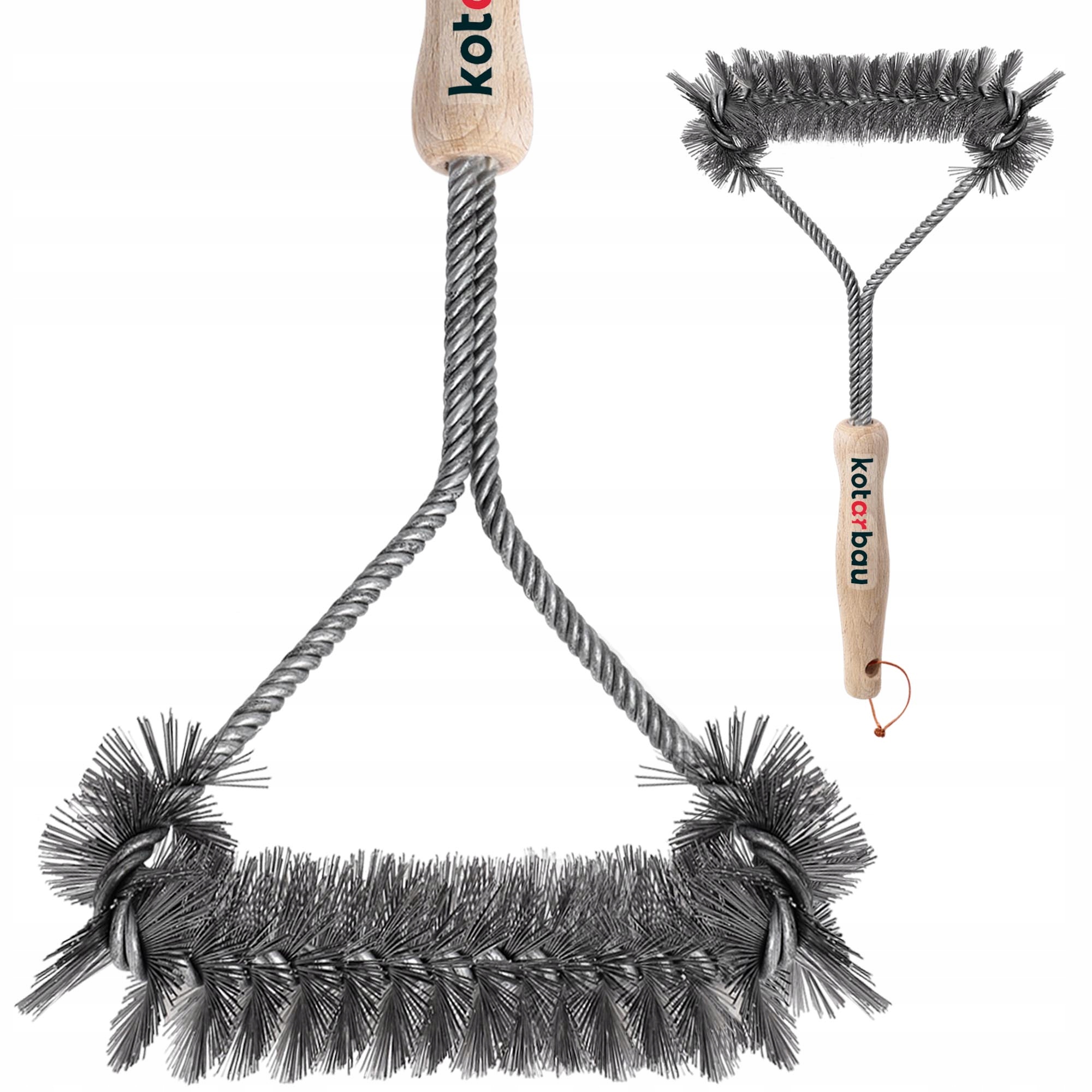 - Вся рабочая поверхность щетки покрыта закаленной проволокой и обработана профилированная, благодаря чему она быстрее удаляет грязь и достигает каждого уголка гриля.