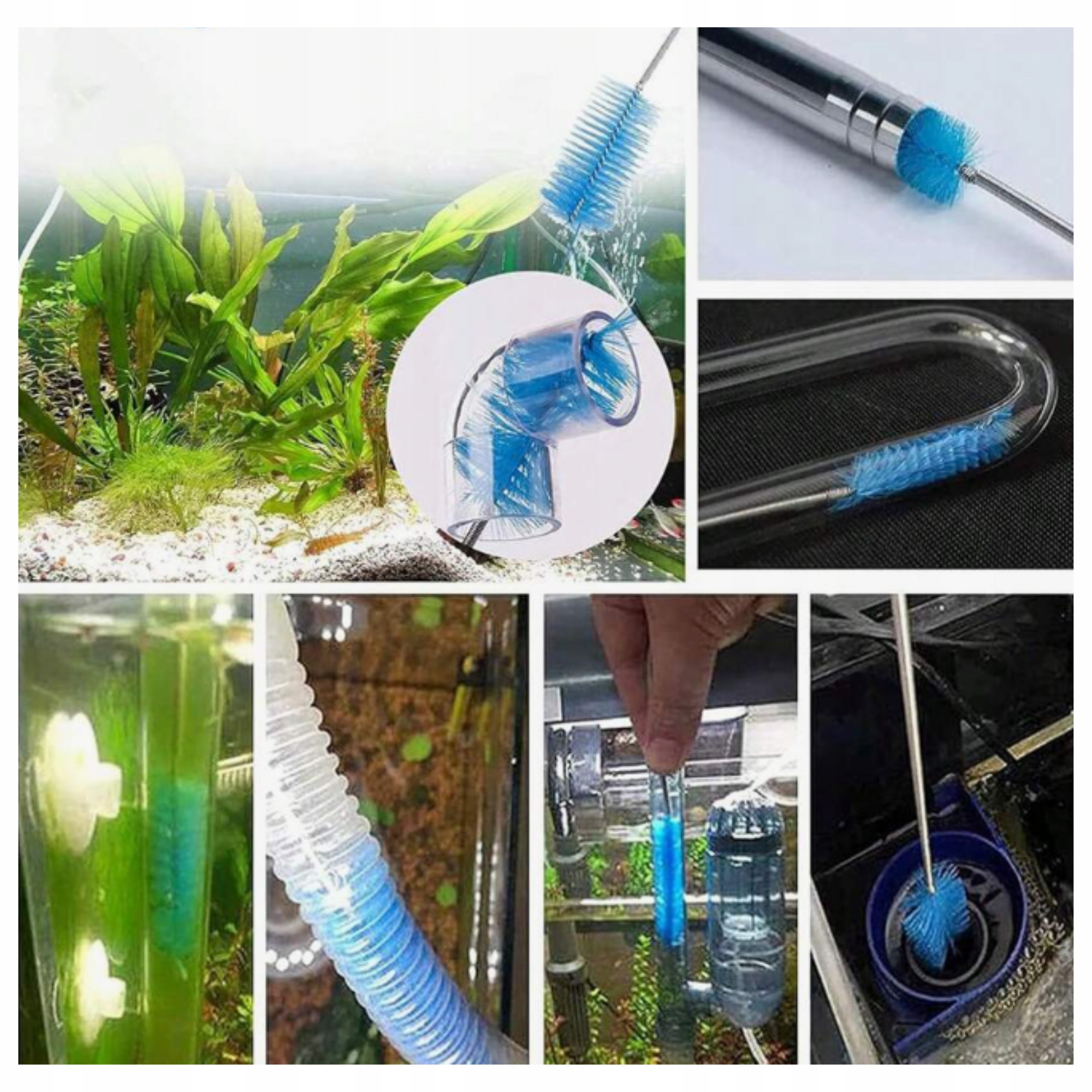 Двусторонняя конструкция щетки облегчает чистку. аквариум. Идеально подходит для очистки водяных насосов, фильтров, труб, соединений и других труднодоступных мест. Прочную пружину из нержавеющей стали и мягкую щетку легко проталкивать и тянуть через трубы.