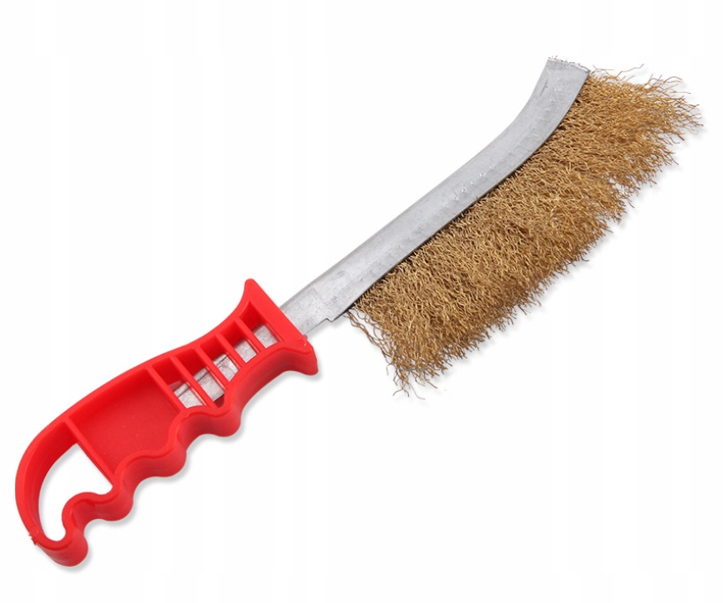 - Щётка изготовлена из гофрированной латунной проволоки в обрамлении металлической ручки.