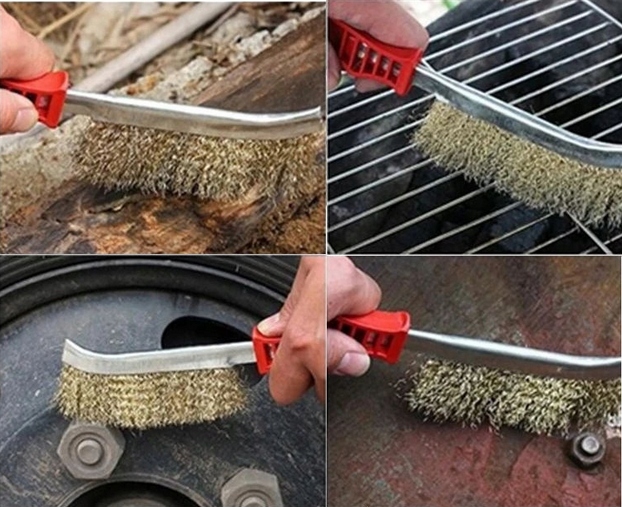 - Щетка изготовлена из гофрированной латунной проволоки в металлической ручке.