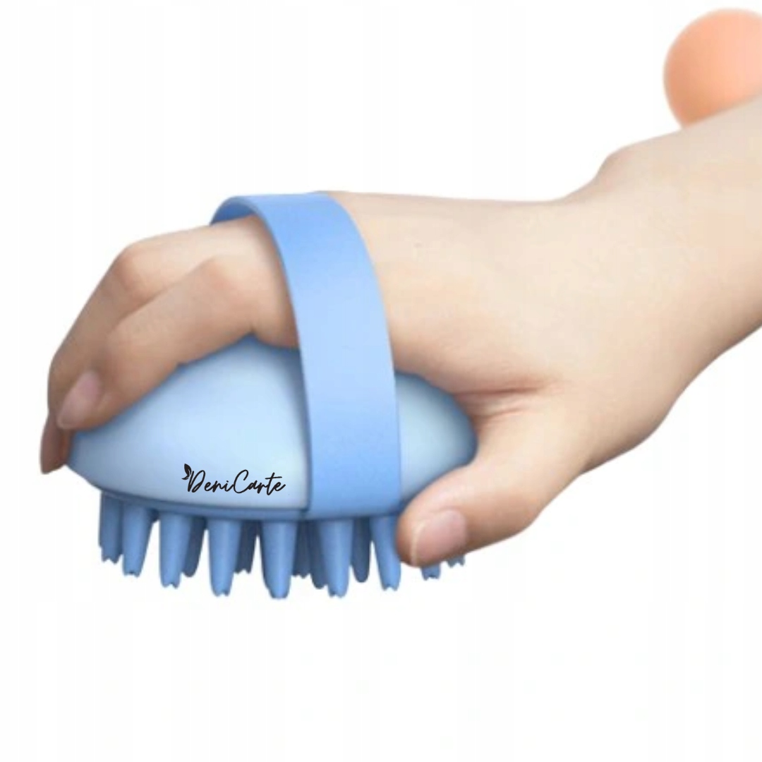 Щетка-массажная, которую мы используем во время мытья волос - она помогает вспенить шампунь и очистить волосы и кожу головы, но прежде всего стимулирует микроциркуляцию, благодаря чему луковицы волосы лучше питаются и укрепляются.