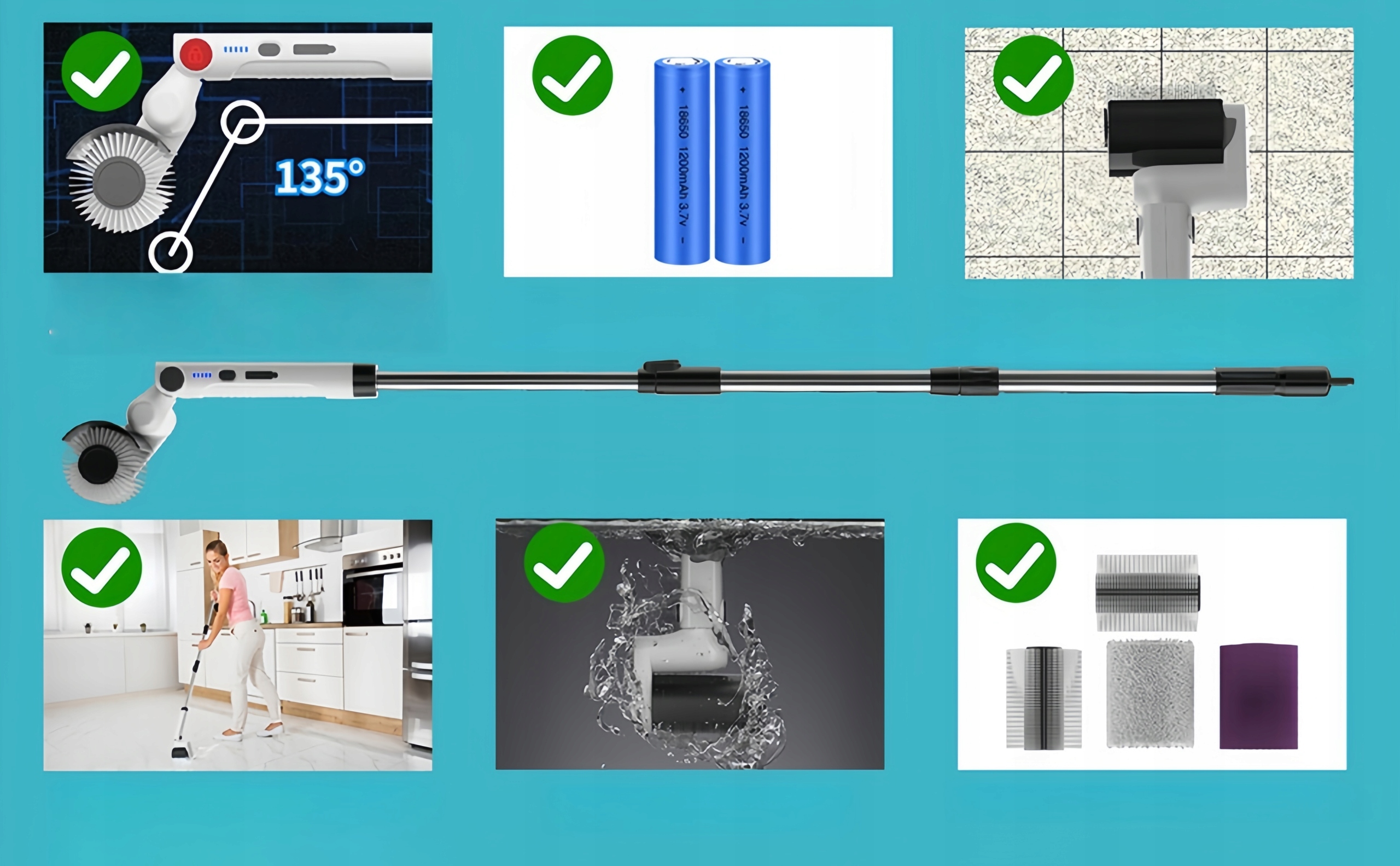- Телескопическая ручка: длина от 35 см до 142 см - чистится высоко и низко без проблем.