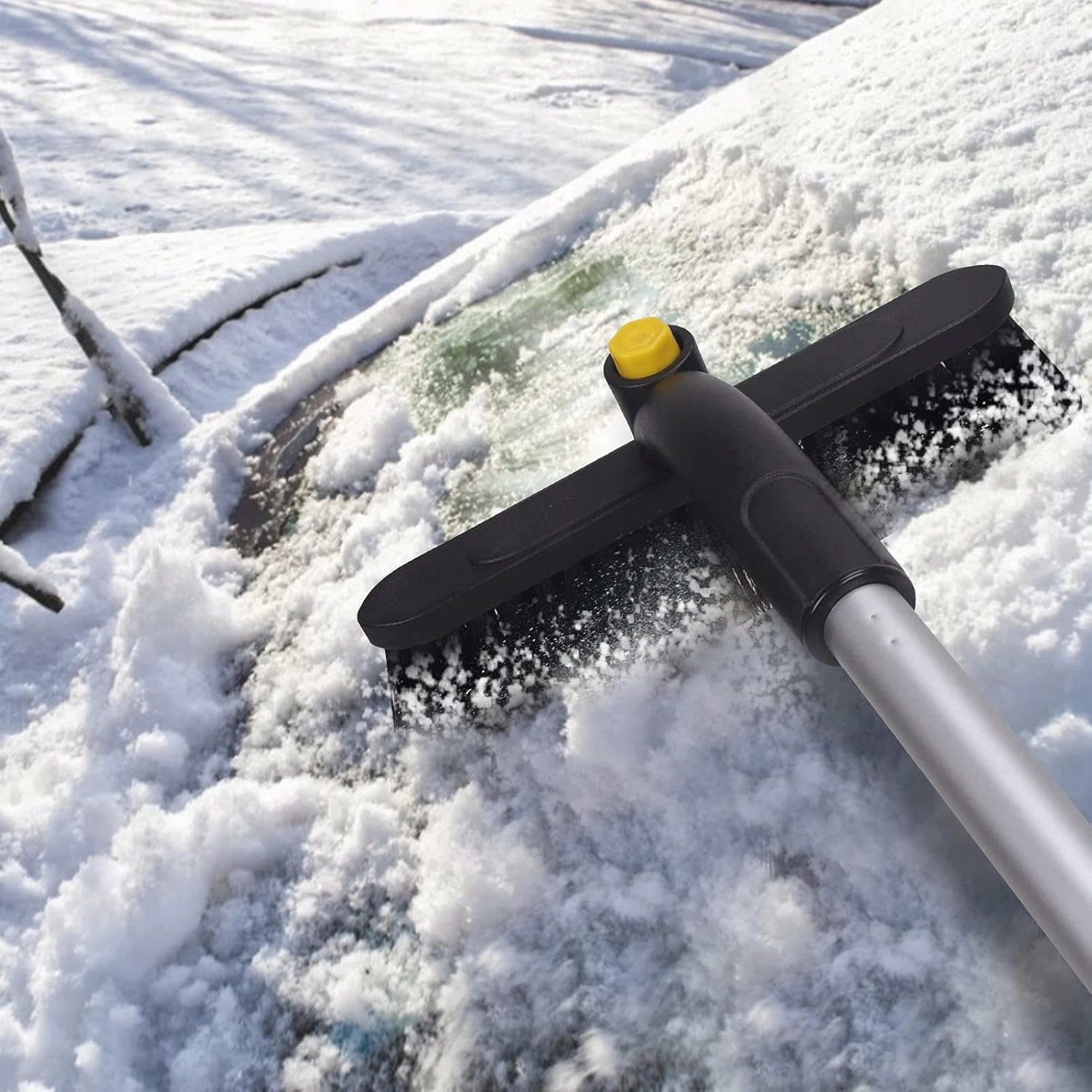 Три в одном, удобное хранение: легко разбирается на три отдельные части (насадка щетки, скребок и телескопическая ручка). Компактное хранилище экономит место, удобно транспортировать и идеально помещается в багажник.