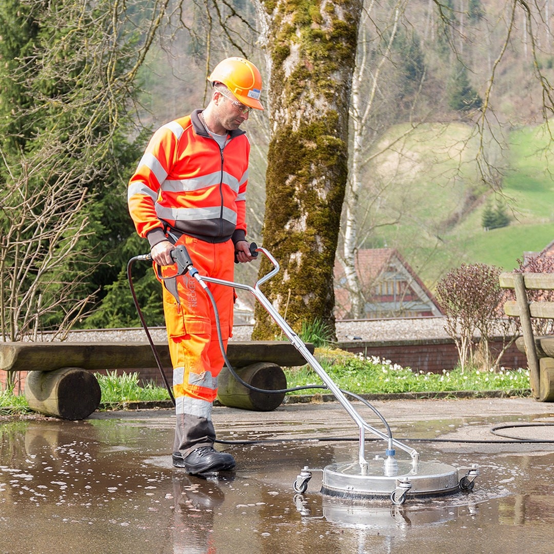 Профессиональная щетка для чистки террас, патио или брусчатки, предназначенная для чистящих устройств высокого давления с расходом воды от 2400л/ ч. Представленная щетка оснащена моющими насадками высокого давления с широким углом струи, расположенными на вращающемся рычаге (с подшипниками), обеспечивающим плавную и стабильную работу.Благодаря своим размерам, эффективности очистки и качеству изготовления t-racer способен для увеличения эффективности очистки поверхности мойки до 500 % по сравнению с щетками меньшего размера или турбонасадками.