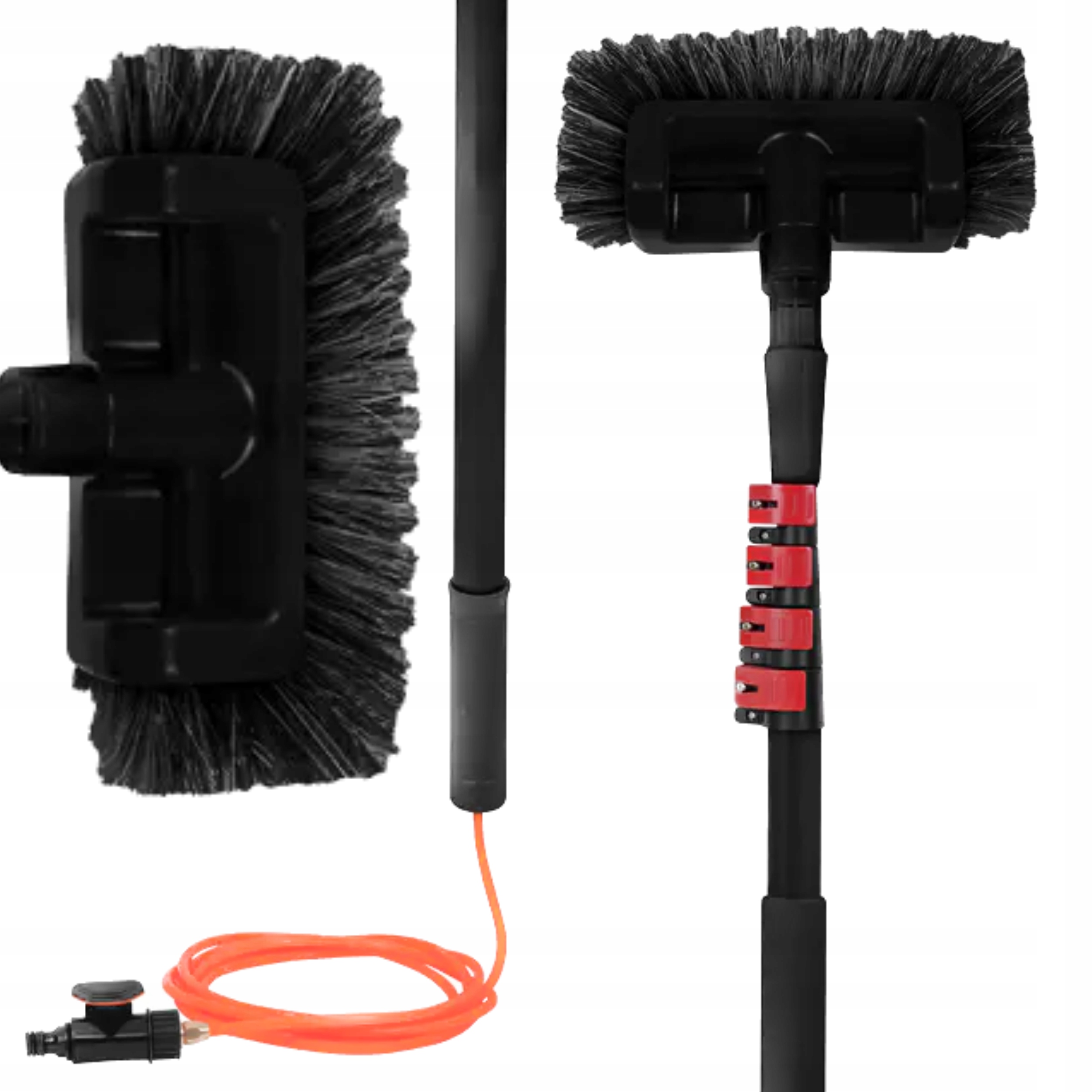 ✔️ Щетка имеет специальный шланг, благодаря которому к ней можно подсоединить садовый шланг с проточной водой