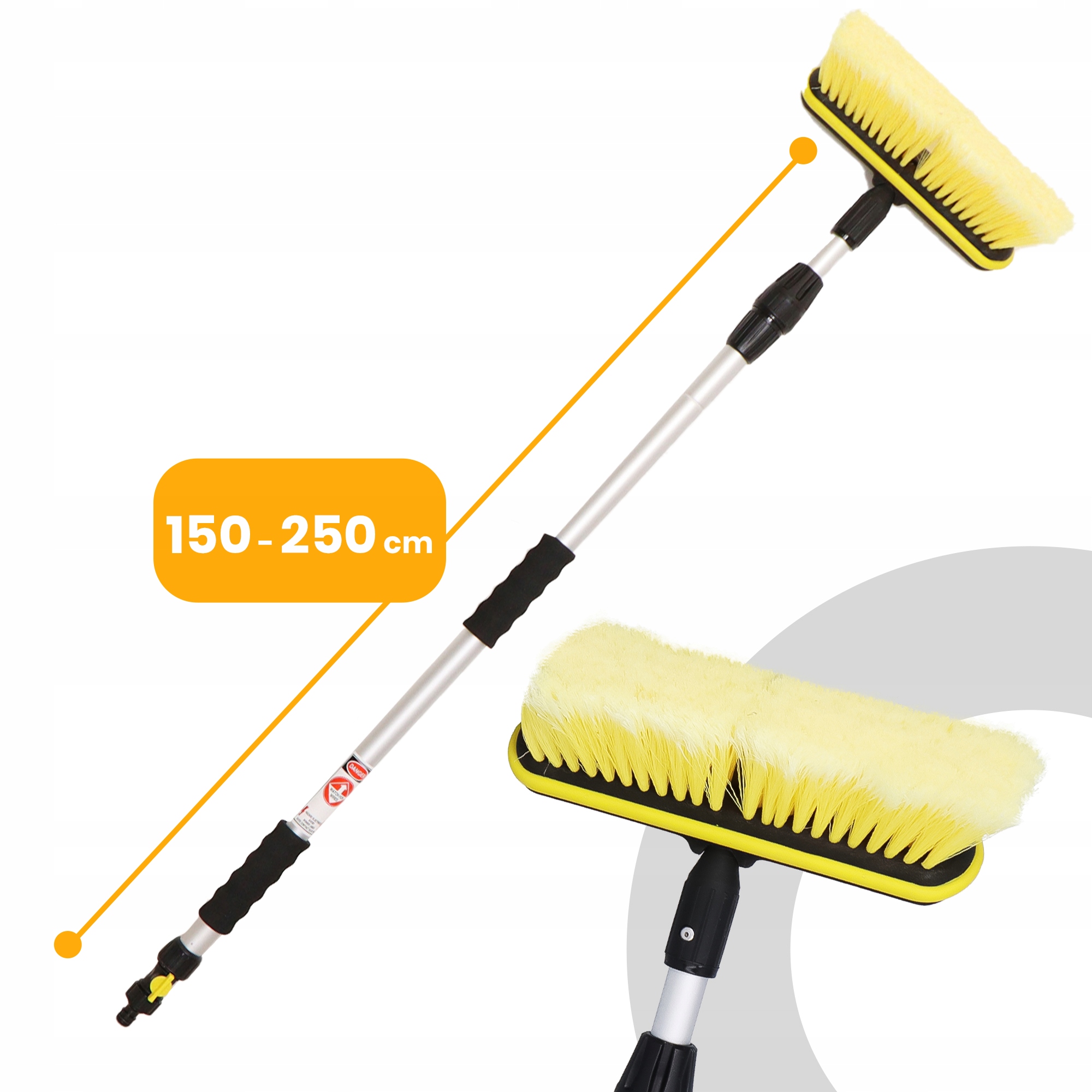 <ул> <ли> Длина: 150–250 см <ли> Материал кисти:Полипропилен, кончики щетины разделены, мягкие, не повреждающие лакокрасочные покрытия. <ли> телескопический механизм: легкая регулировка длины с возможностью фиксации. <ли> Применение: мойка крупных транспортных средств, таких как грузовики, автобусы, лодки и легковые автомобили. <ли> Дополнительные функции: Быстрый соединитель – упрощает подсоединение садового шланга. <ли> материал телескопической стойки: анодированный алюминий (легкий и прочный). <ли> Дополнительные функции: Клапан подачи воды — позволяет контролировать поток воды во время стирки. <ли> Тип кисти: ОдноплоскостныйНомер продукта: SE030606026