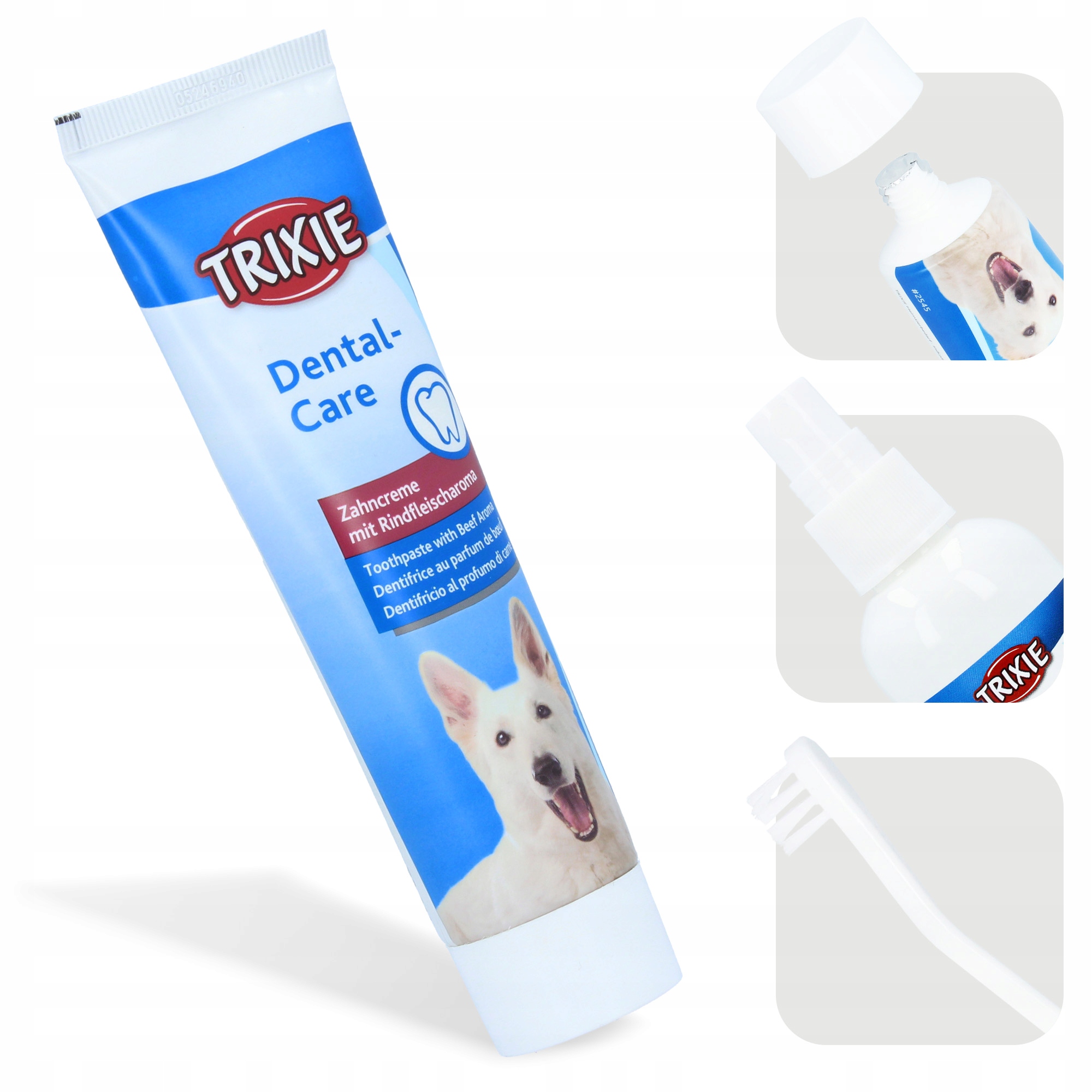Набор зубных щеток с зубной пастой и зубным спреем. Благодаря этому вы легко сможете позаботиться о здоровье и свежем дыхании вашей собаки.