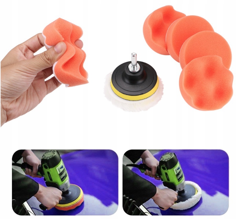 - 2x мягкие оранжевые губки (диаметр 100 мм) – Идеально подходят для деликатной чистки таких поверхностей, как: обивки, пластика, кожи, а также для нанесения защитных препаратов (например, воска, полирующих средств).