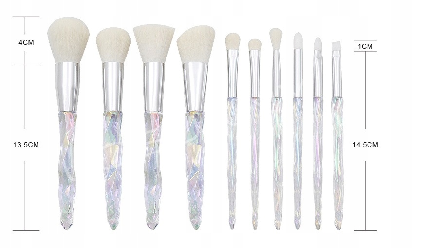 - Цвета: ручки в оттенках хрусталя, мерцающие. Белая щетина, как на фотографиях.