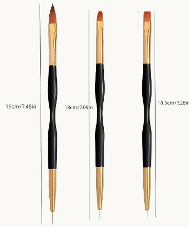 щетка для ногтей -кисточки для стиля геля с двойным prima derma 3 pcs