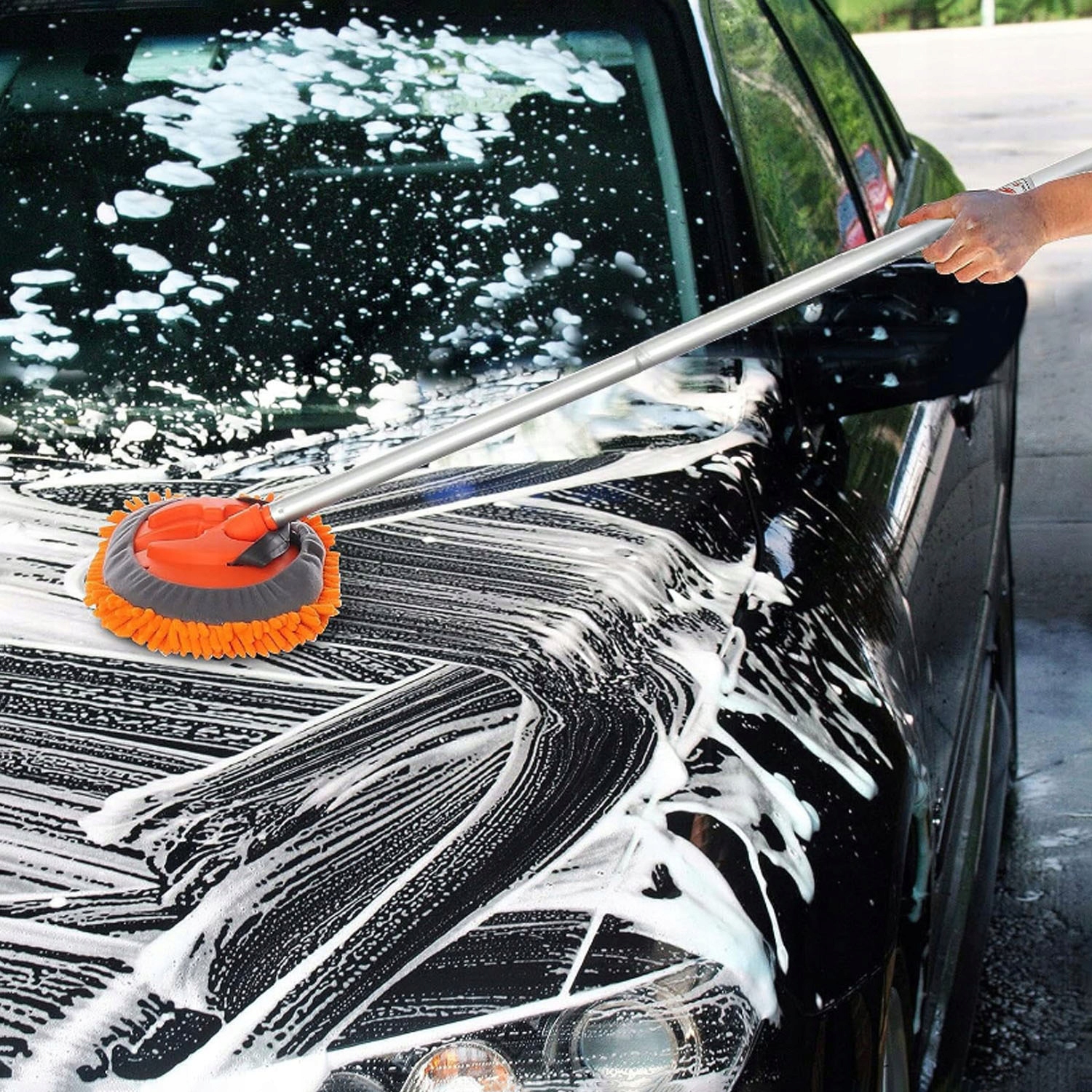 - 🧹🪣💧Удлиненная щетка для автомойки длиной 157 см легко достанет до крыши вашего автомобиля и других более высоких мест.
