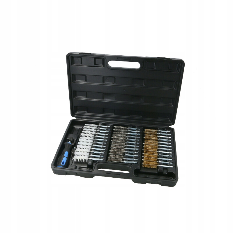 Набор из 38 щеточек для чистки разной жесткости. Все щетки с приводом 1/4 дюйма. Для очистки и удаления заусенцев с цилиндров, гильз, трубок, свечных колодцев. зажигание, форсунки и т.д. Также для использования в электрических и пневматических дрелях. СОДЕРЖАНИЕ НАБОРА: 12 нейлоновых кистей: О 8 - 9 - 10 - 11 - 12 - 13 - 14 - 15 - 16 - 17 - 18 - 19 мм 12 стальных щеток: О 8 - 9 - 10 - 11 - 12 - 13 - 14 - 15 - 16 - 17 - 18 - 19 мм 12 латунных щеток: О 8 - 9 - 10 - 11 - 12 - 13 - 14 - 15 - 16 - 17 - 18 - 19 мм Ручка 1 1/4 дюйма 1 удлинитель 150 мм Чемодан