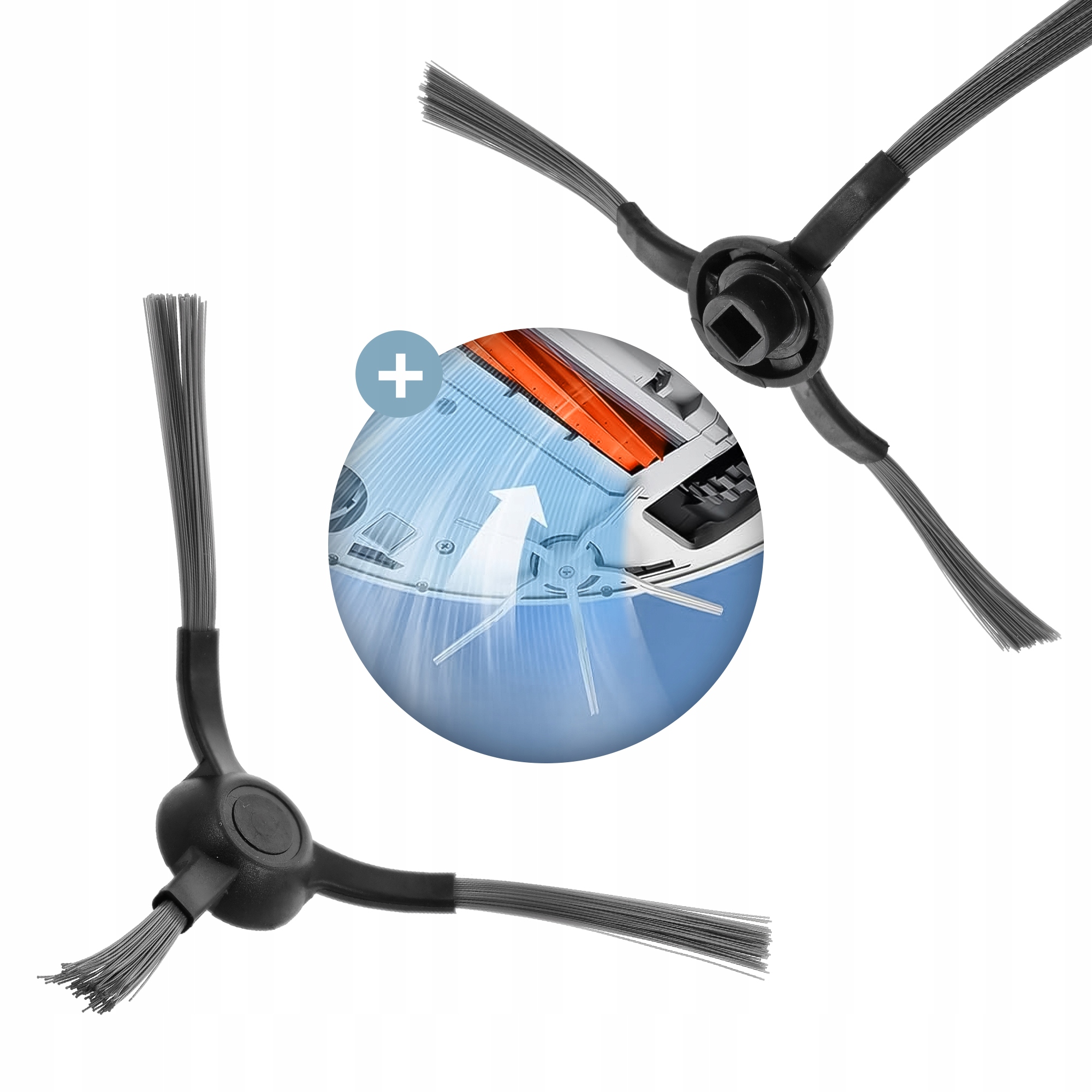 ✅ 2 трехлапых боковых щетки — достигает углов и краев.