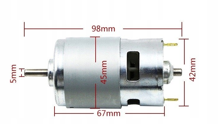 Щеточный двигатель постоянного тока 12-24 В - класс 775 - ось 5 мм - 20000 об/мин - двойной подшипник - высокий крутящий момент