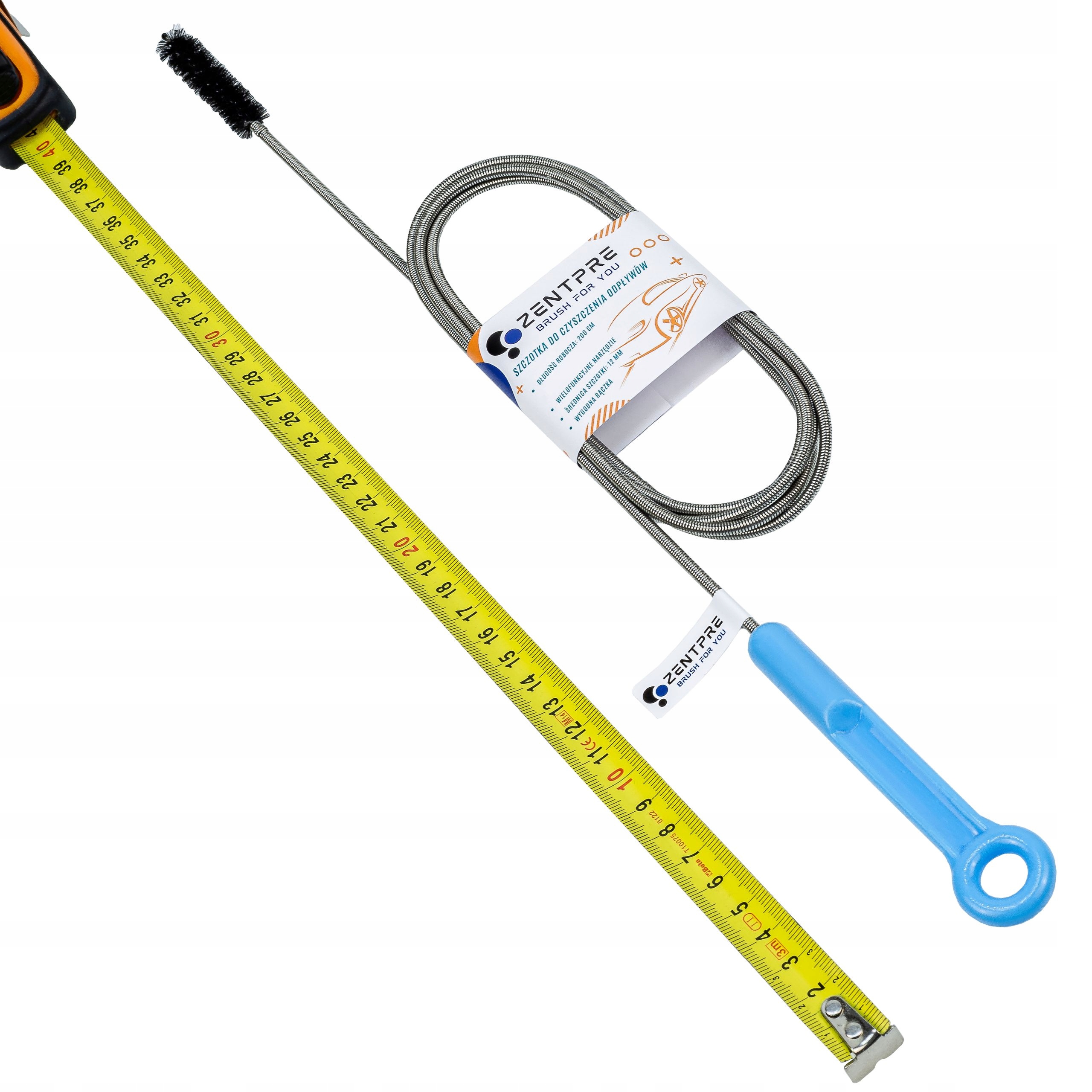 - Длина щетки вместе с пружиной составляет 200 см, что позволяет легко протолкнуть большинство сливных труб.