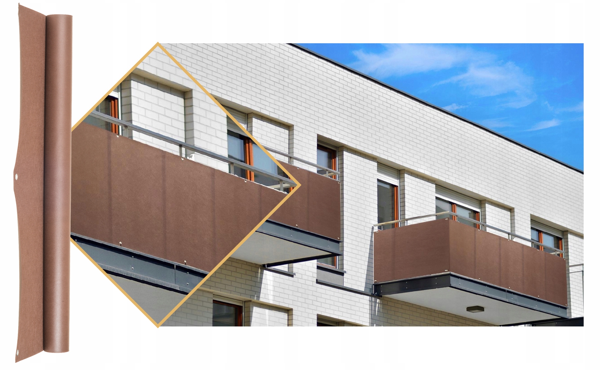 ➡️ Лучший способ установки балконного покрытия — вплетение его между перилами. Это предотвращает создание эффекта «паруса».