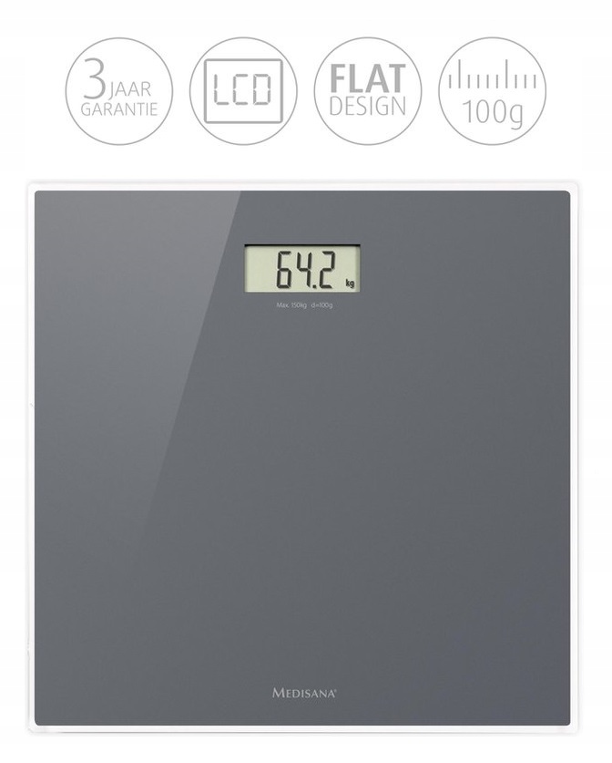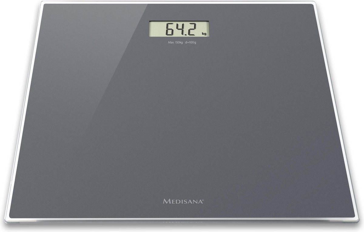 Шкала для ванной комнаты Medisana стеклянная электронная точность LCD 150 кг серого