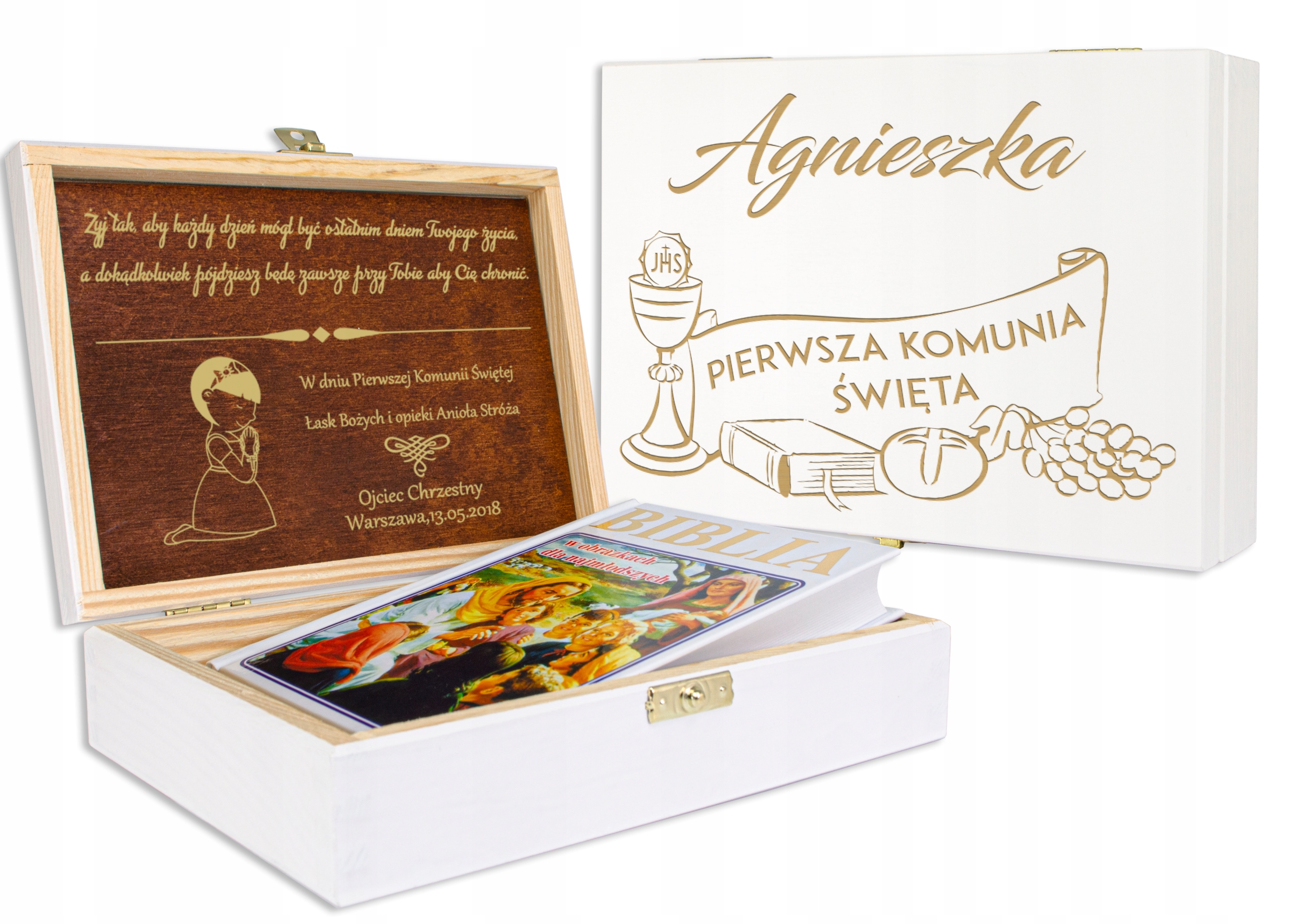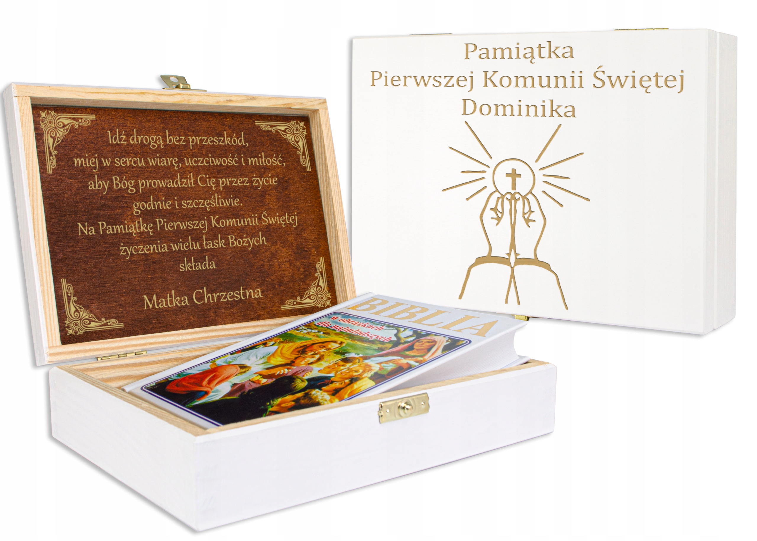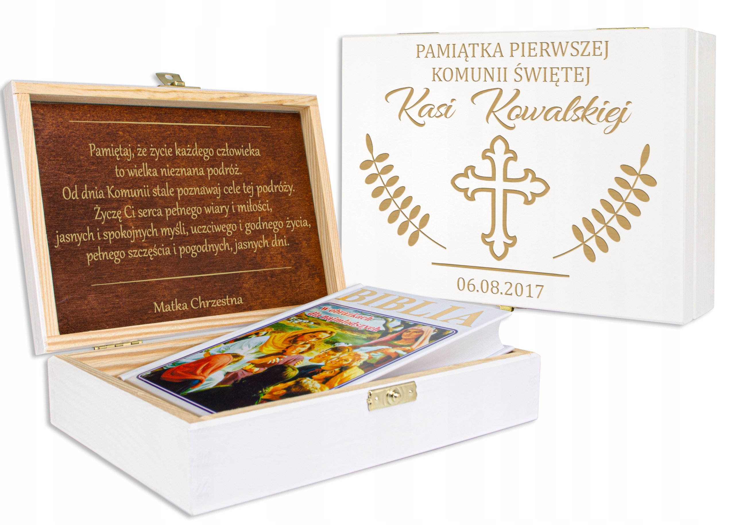 БЕЛАЯ КОРОБКА С ГРАВИРОВКОЙ ДЛЯ КРЕЩЕНИЯ ИЛИ ПРИЧАСТИЯ